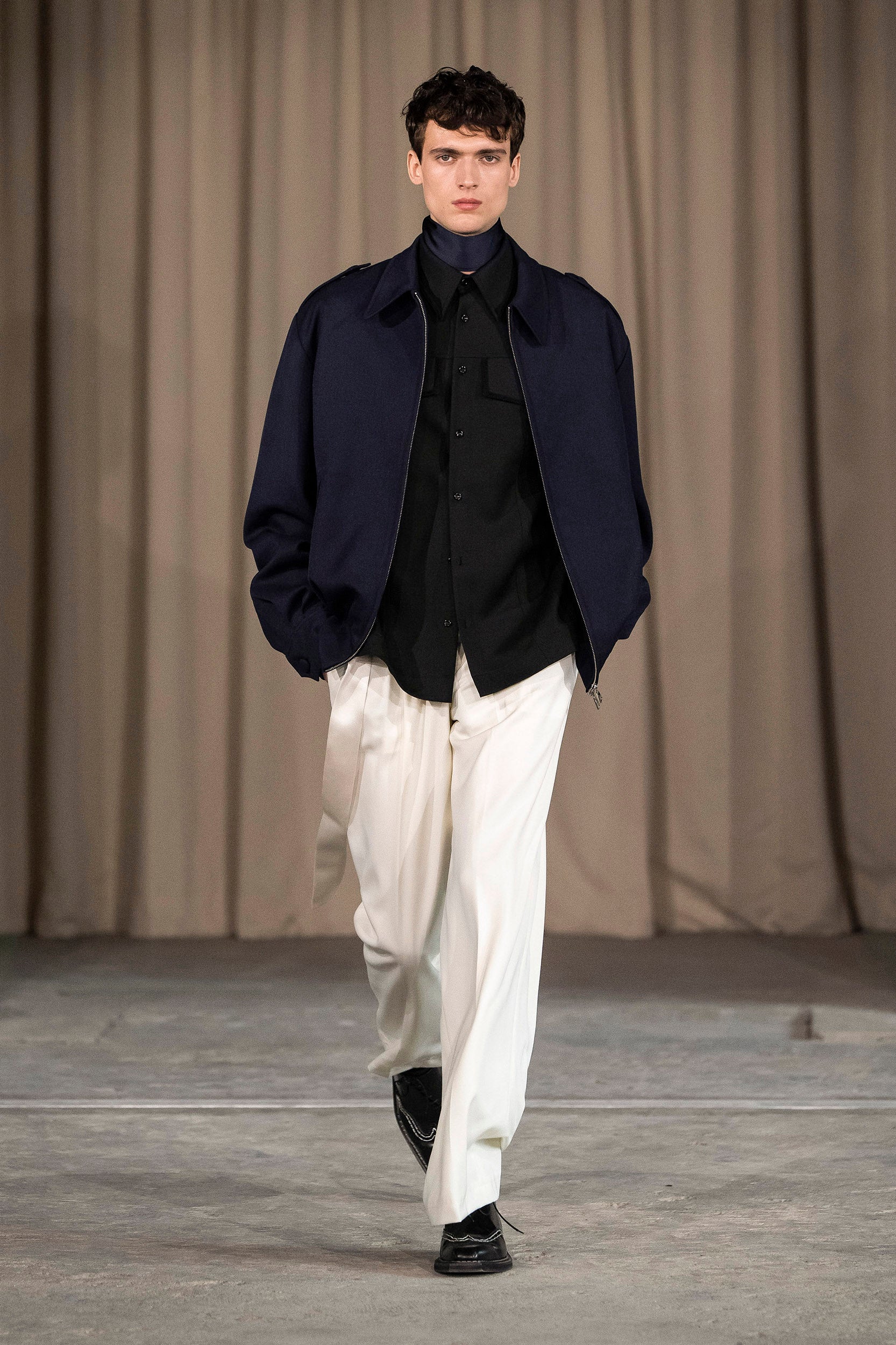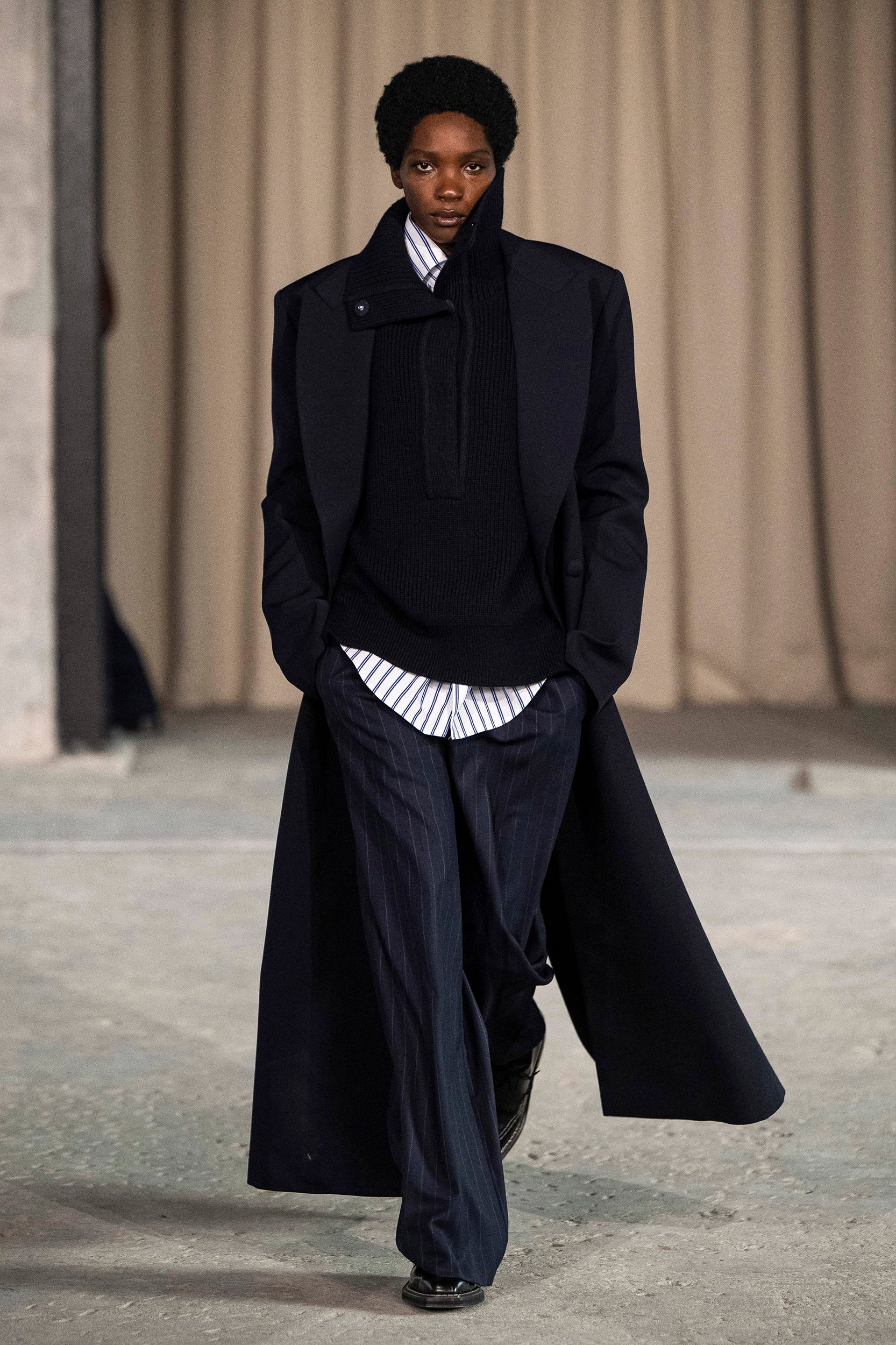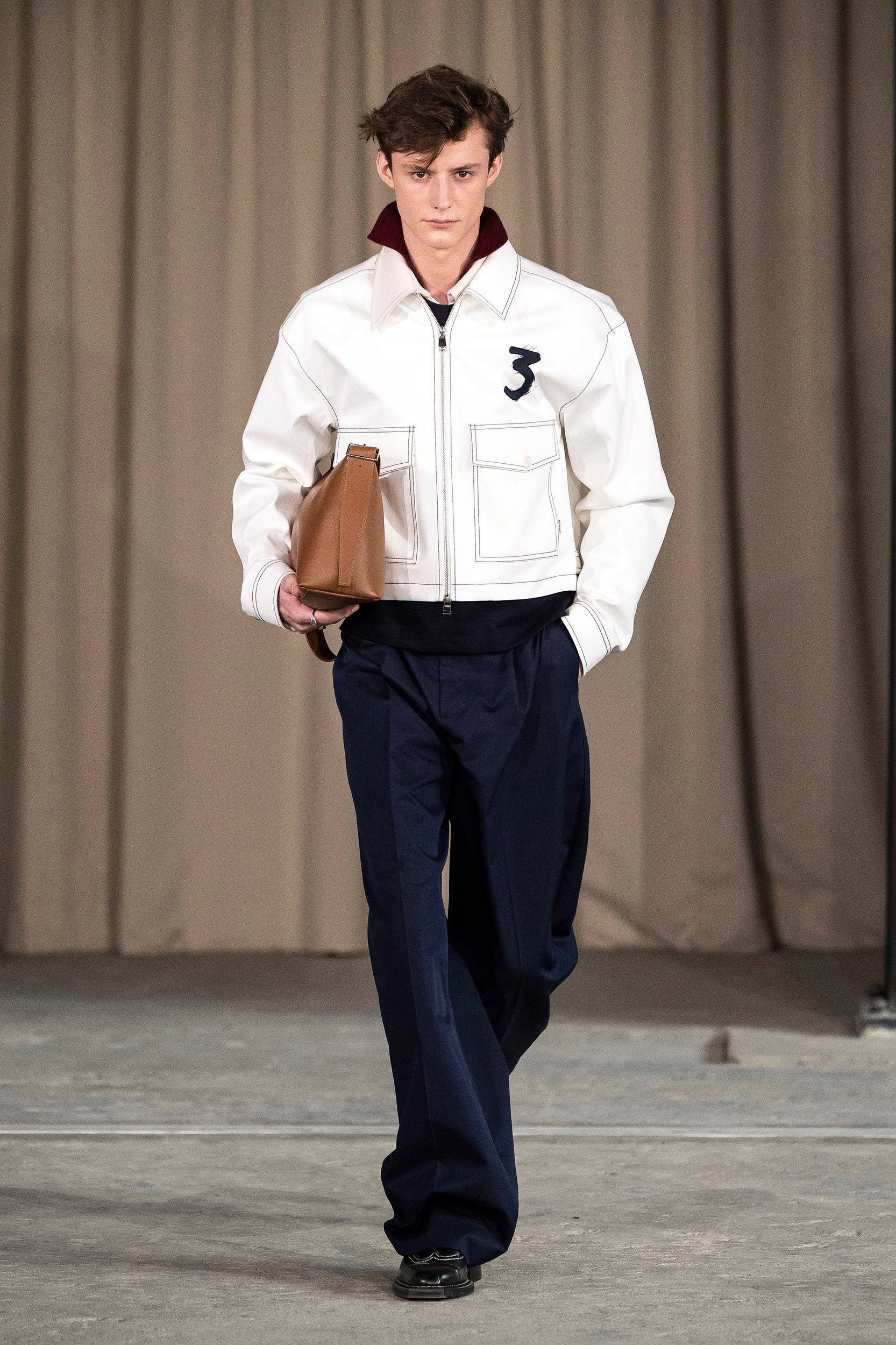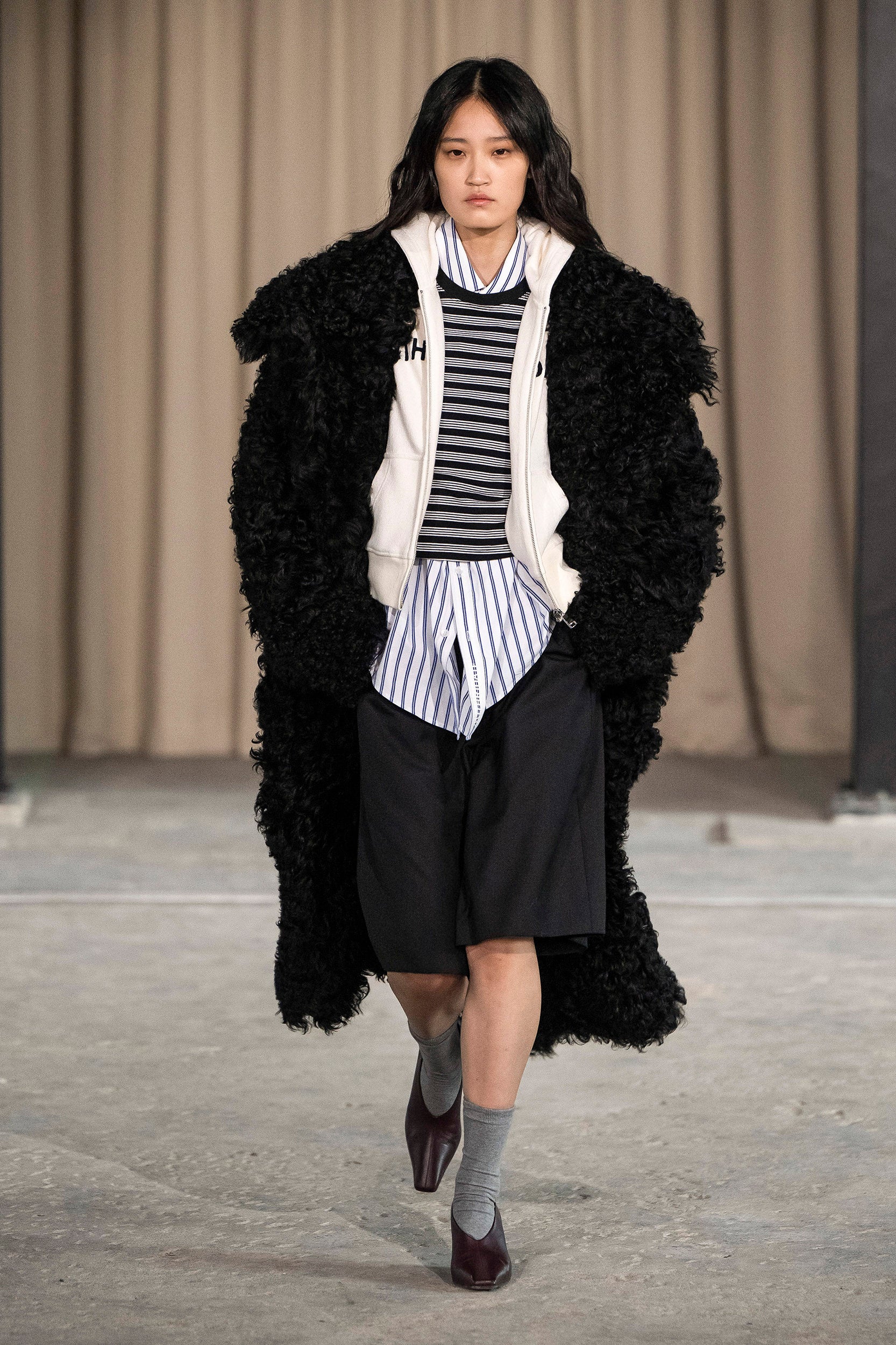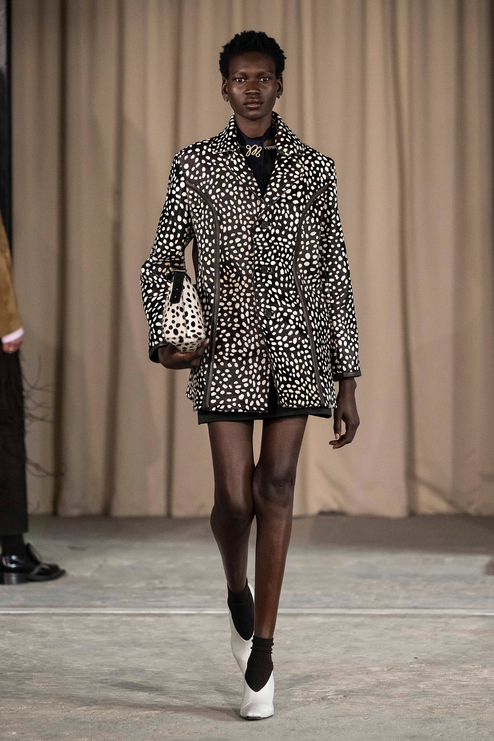 Saccharine pastels clash with rich leathers and wools, while full skirts balance strong-shouldered tailoring. Classic British wardrobe staples are reimagined, layering nostalgia with modernity. Eccentric textures, and playful contrasts redefine tradition, embracing a multifaceted reality.