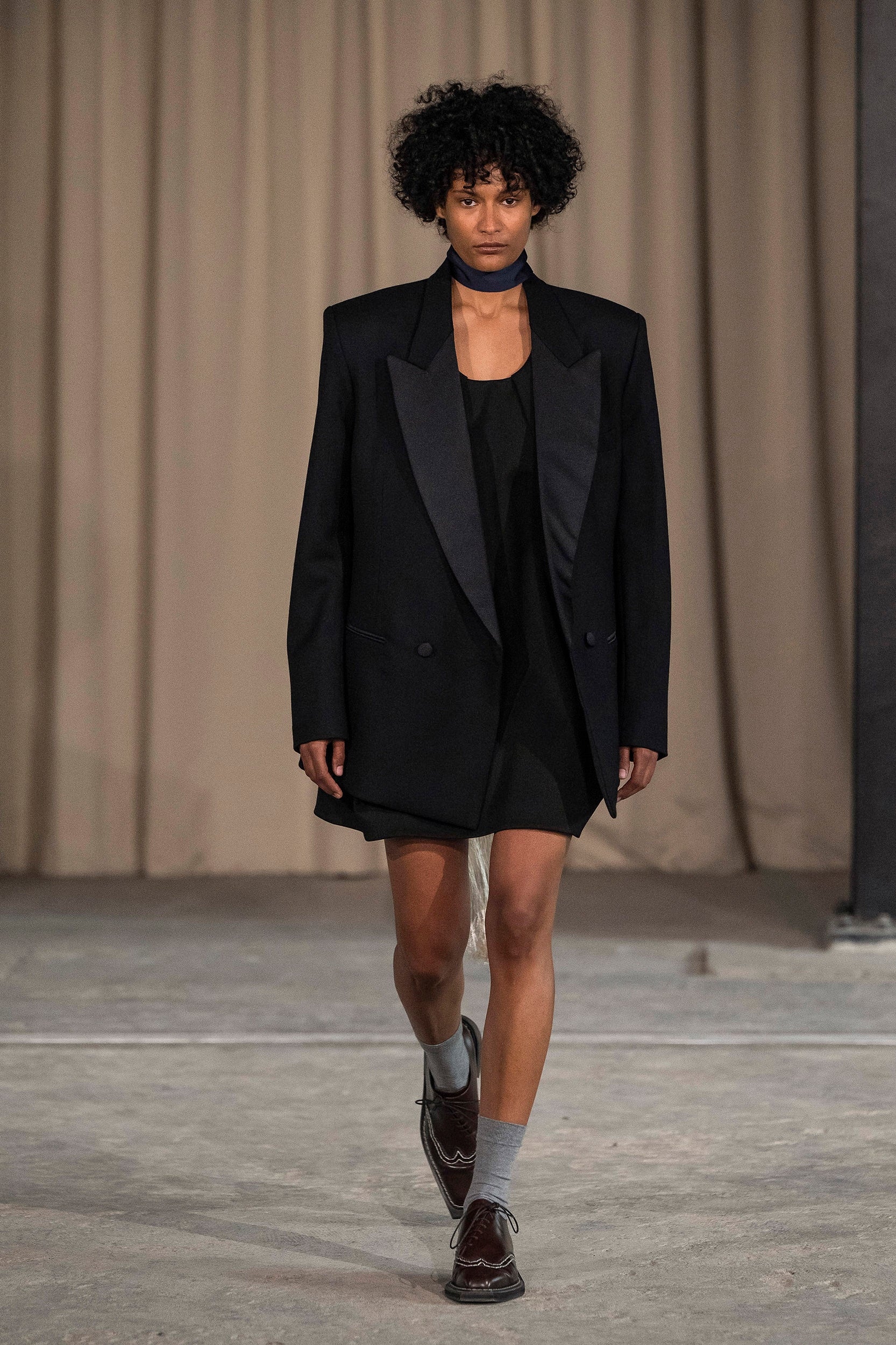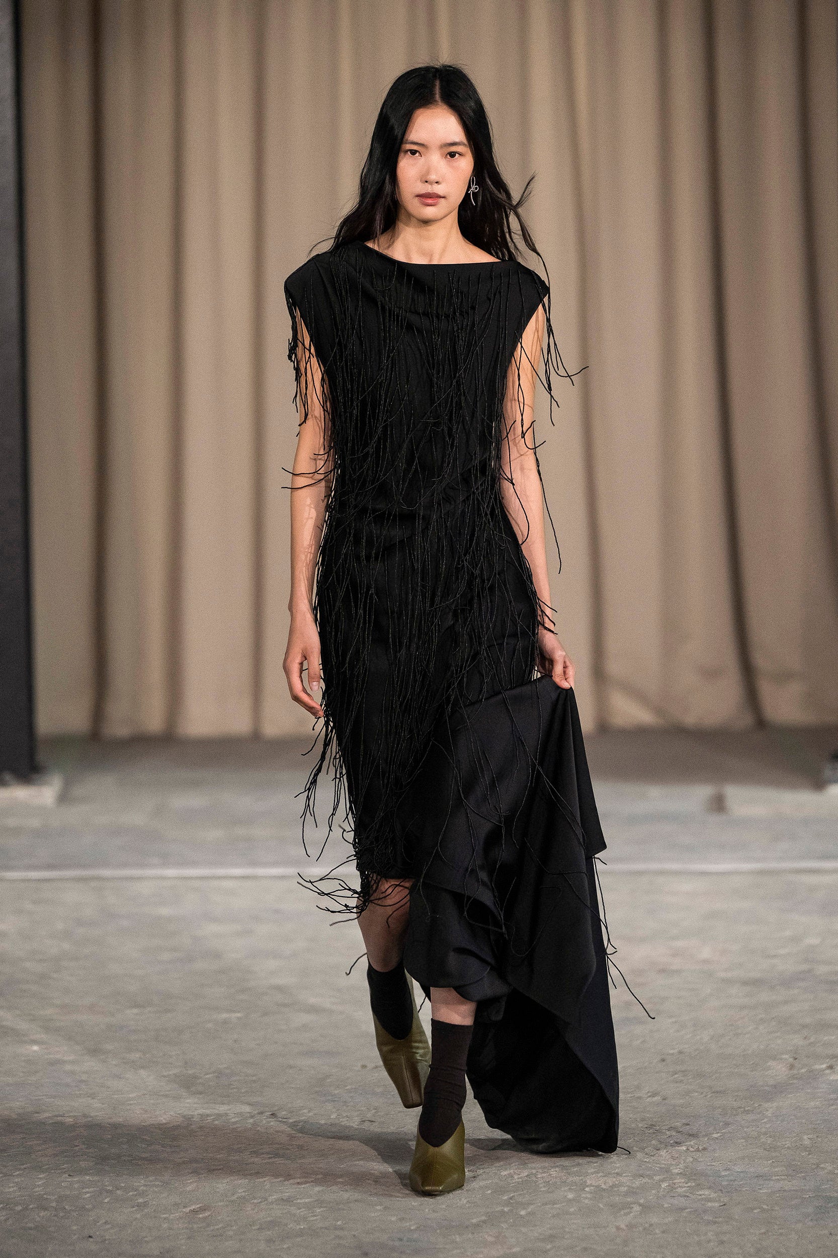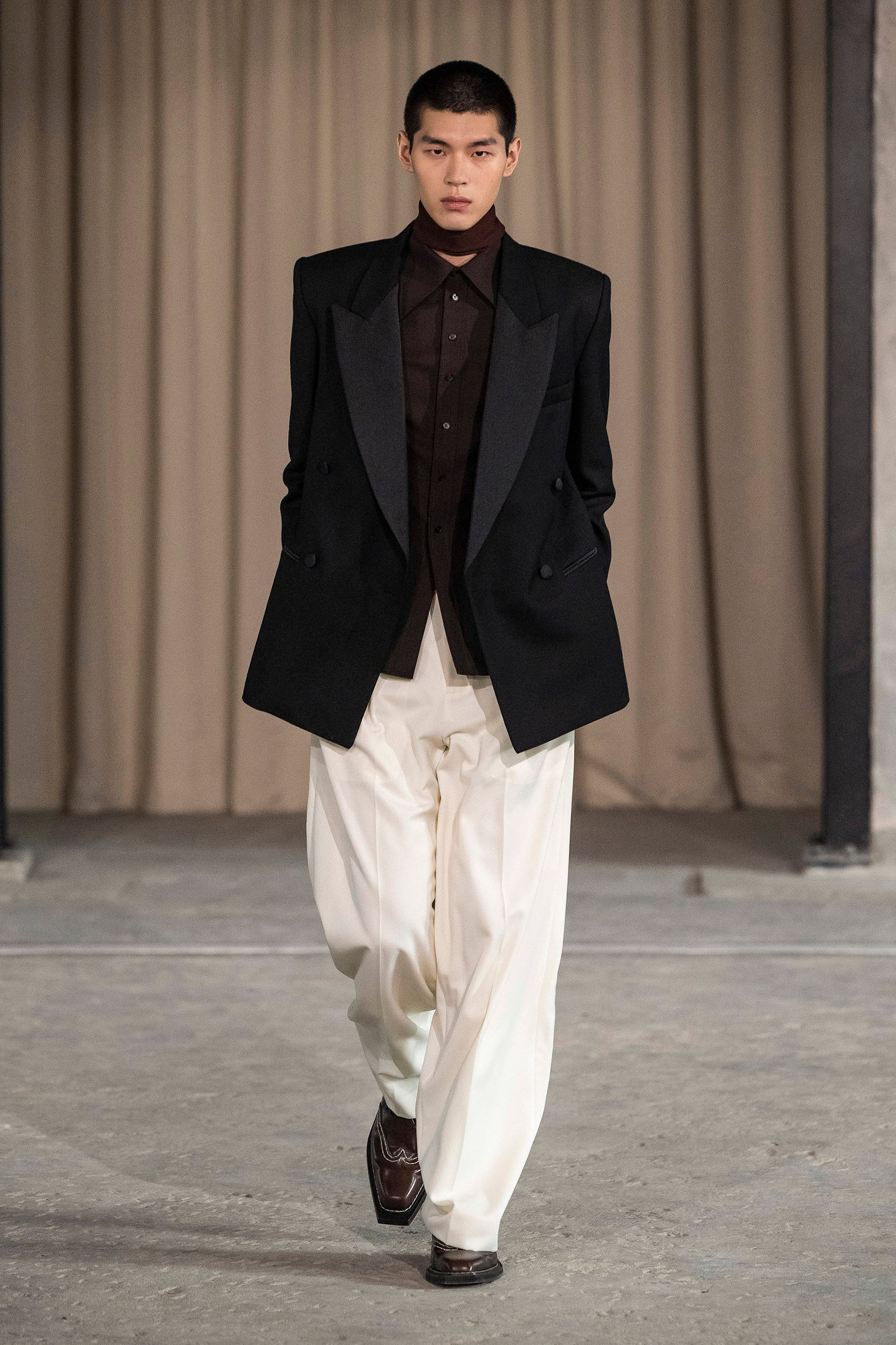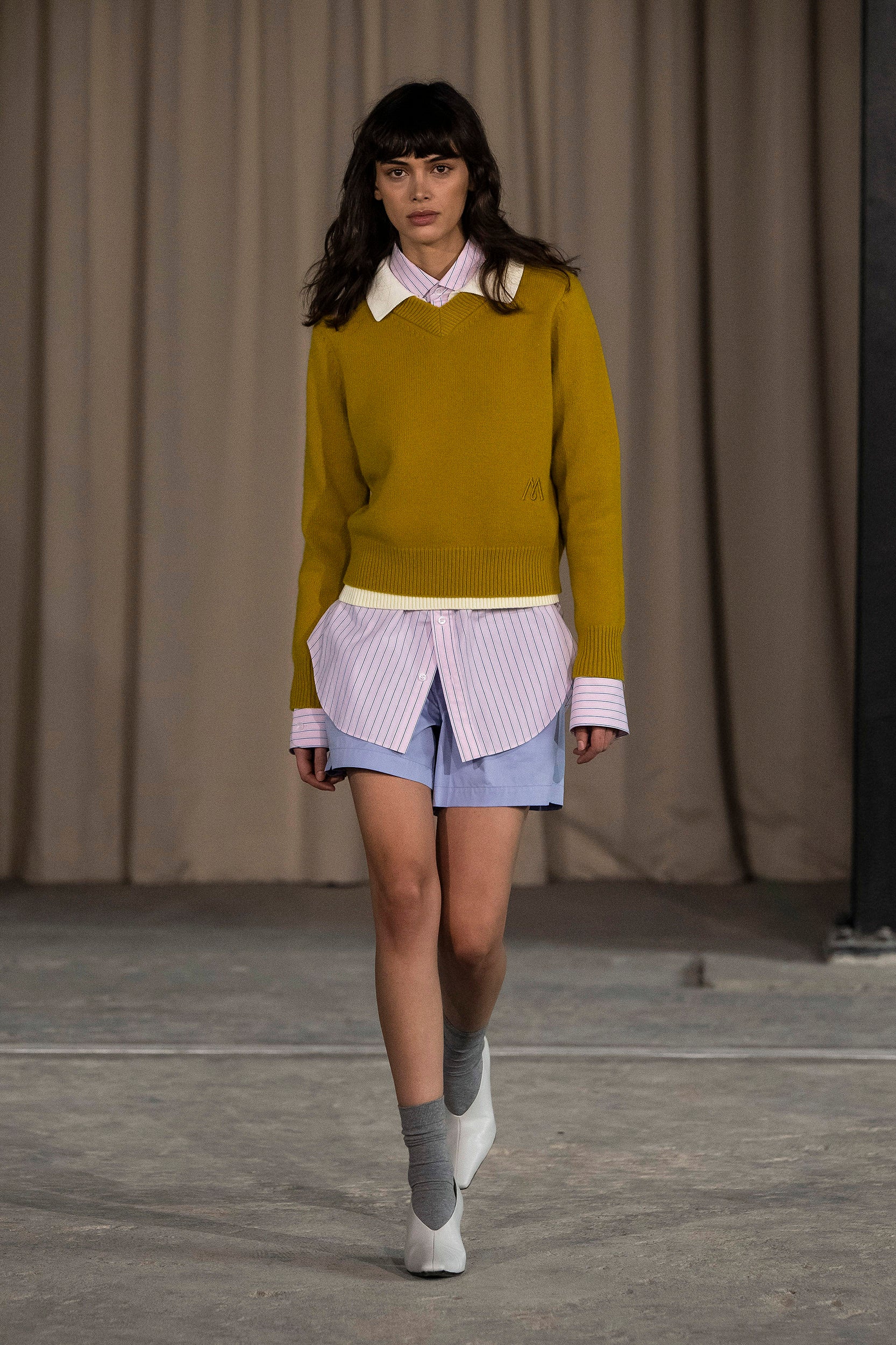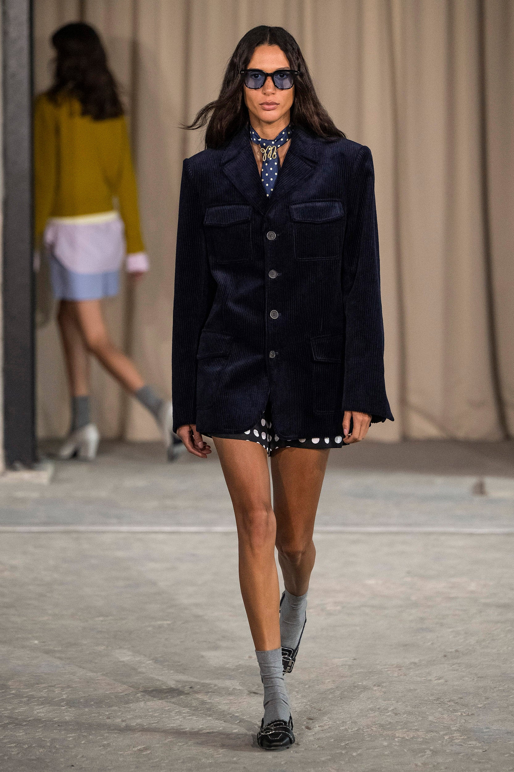 Saccharine pastels clash with rich leathers and wools, while full skirts balance strong-shouldered tailoring. Classic British wardrobe staples are reimagined, layering nostalgia with modernity. Eccentric textures, and playful contrasts redefine tradition, embracing a multifaceted reality.