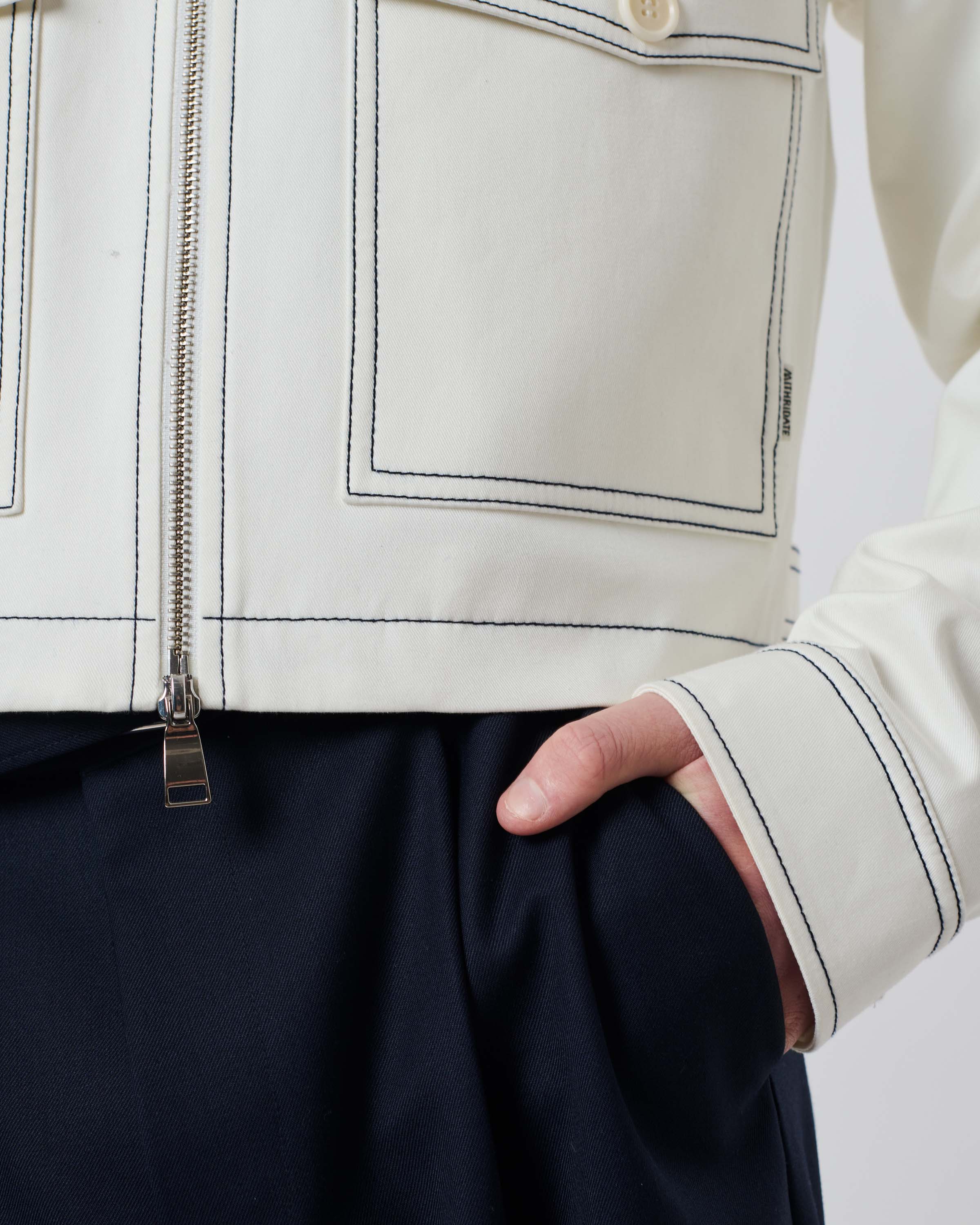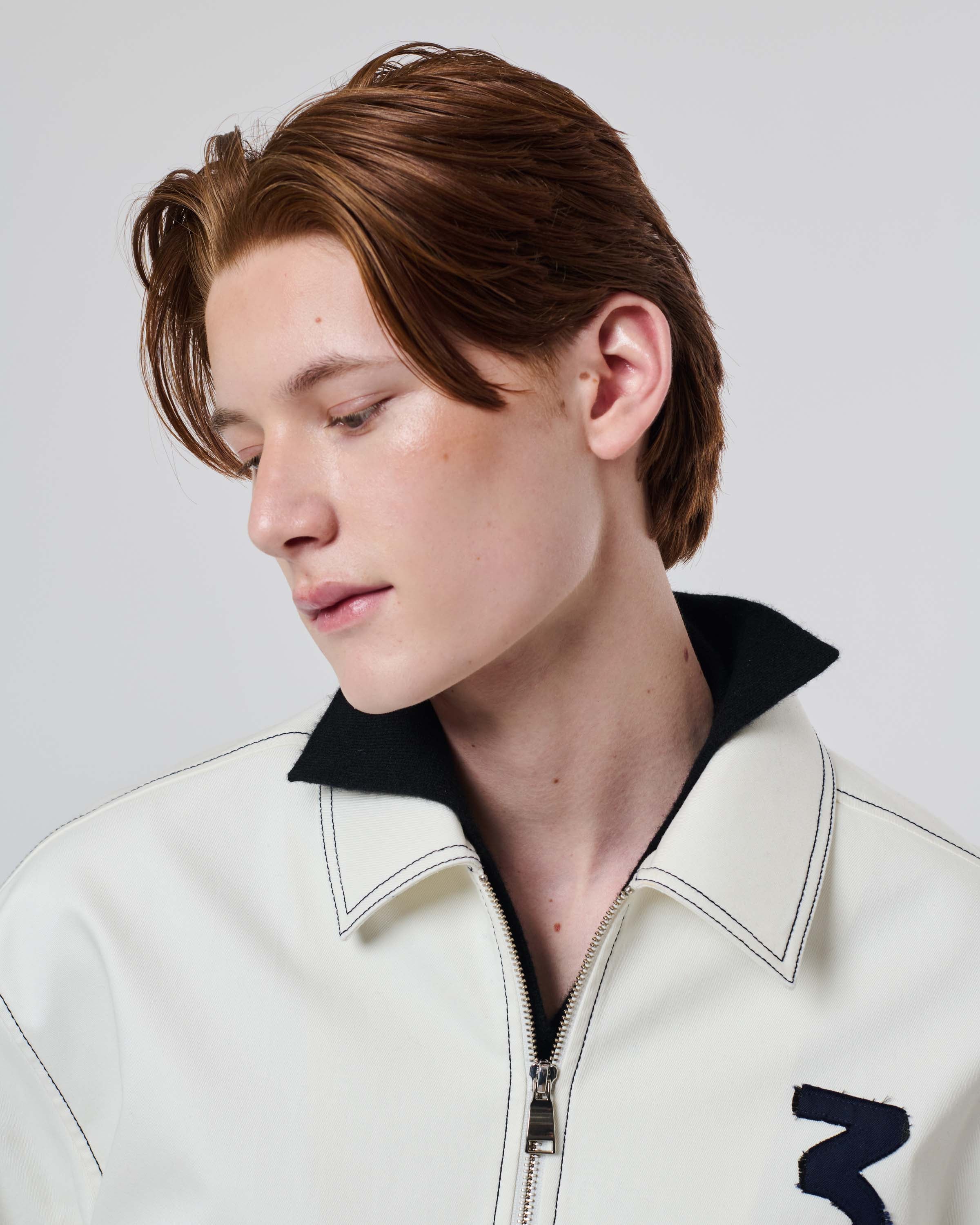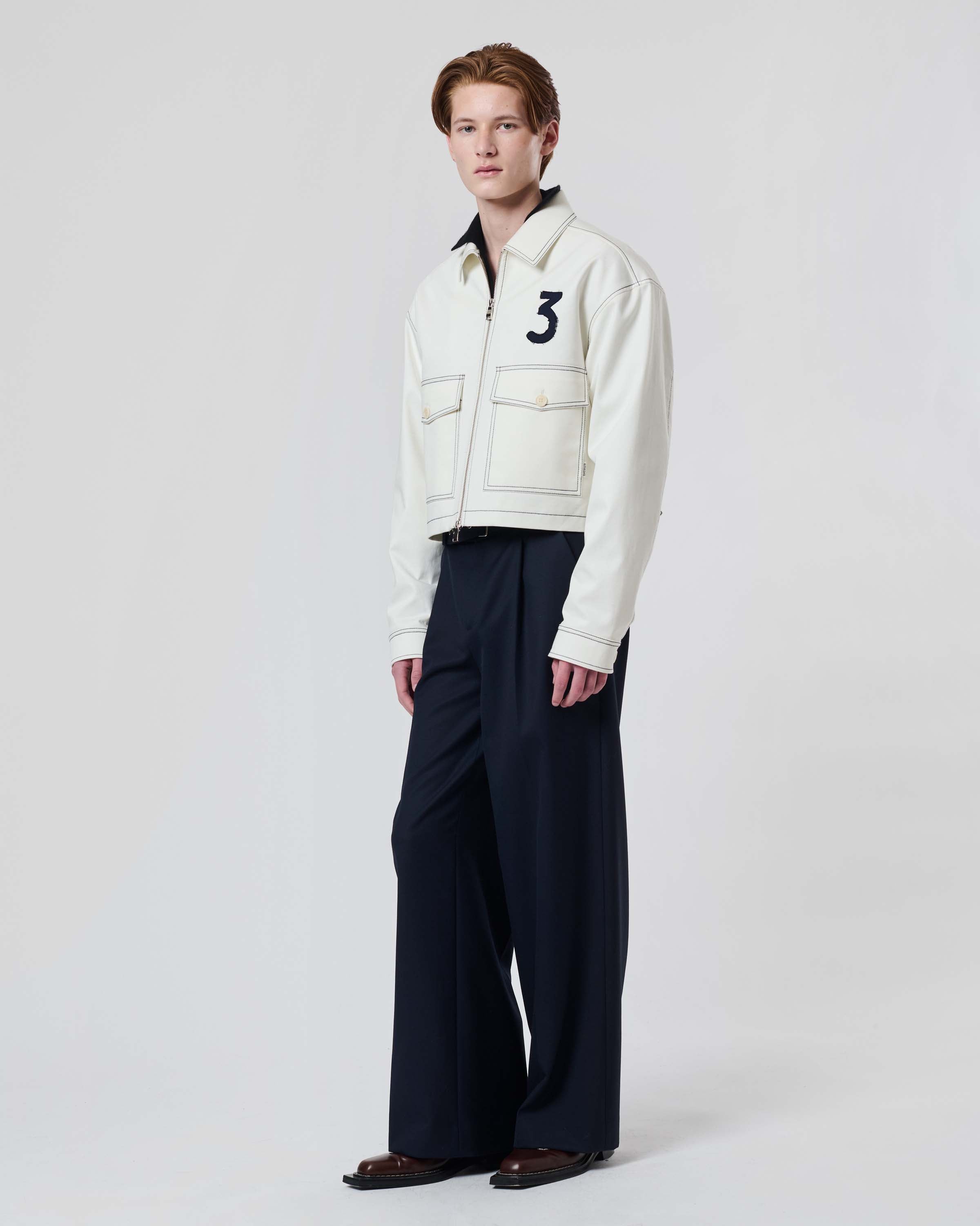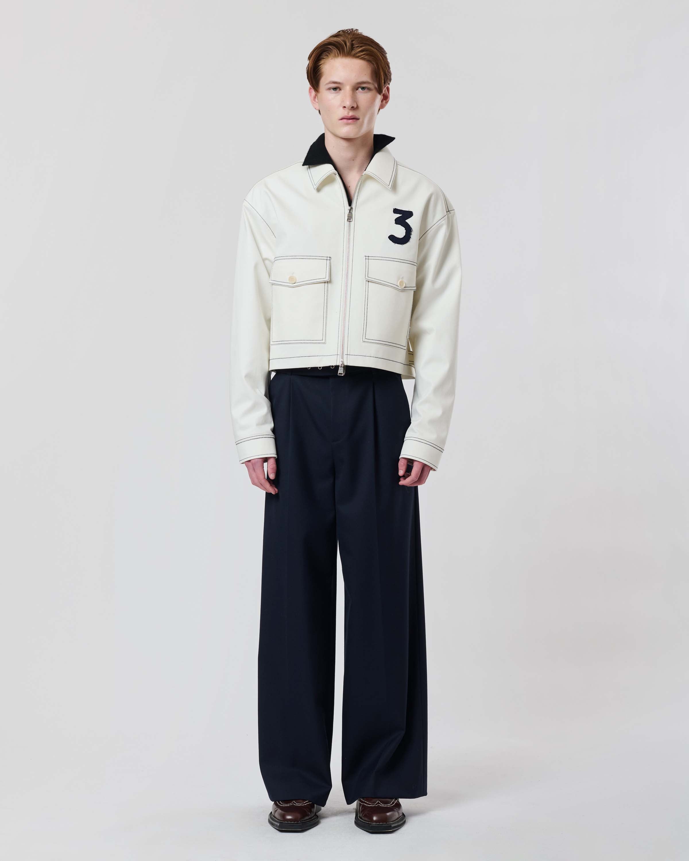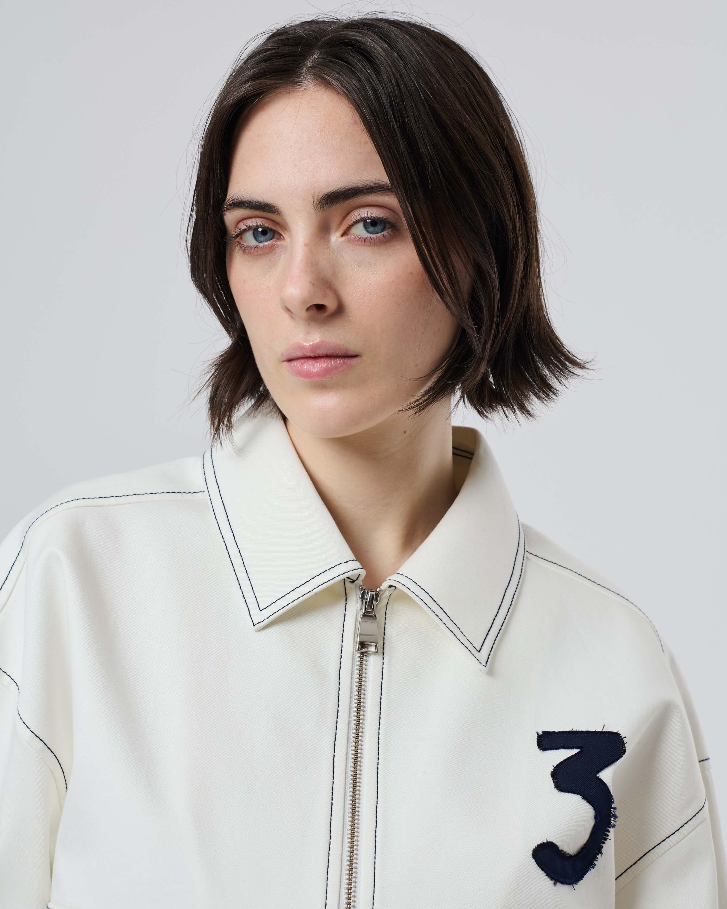 View Similar ProductsA hero piece from the Autumn Winter 2025 Runway Collection, the Car Park Jacket is made from a heavy cotton twill with contrast stitching. Detailed with an appliqué number '3' and complete with a two-way zipper. Cut to a regular fit and hip length.