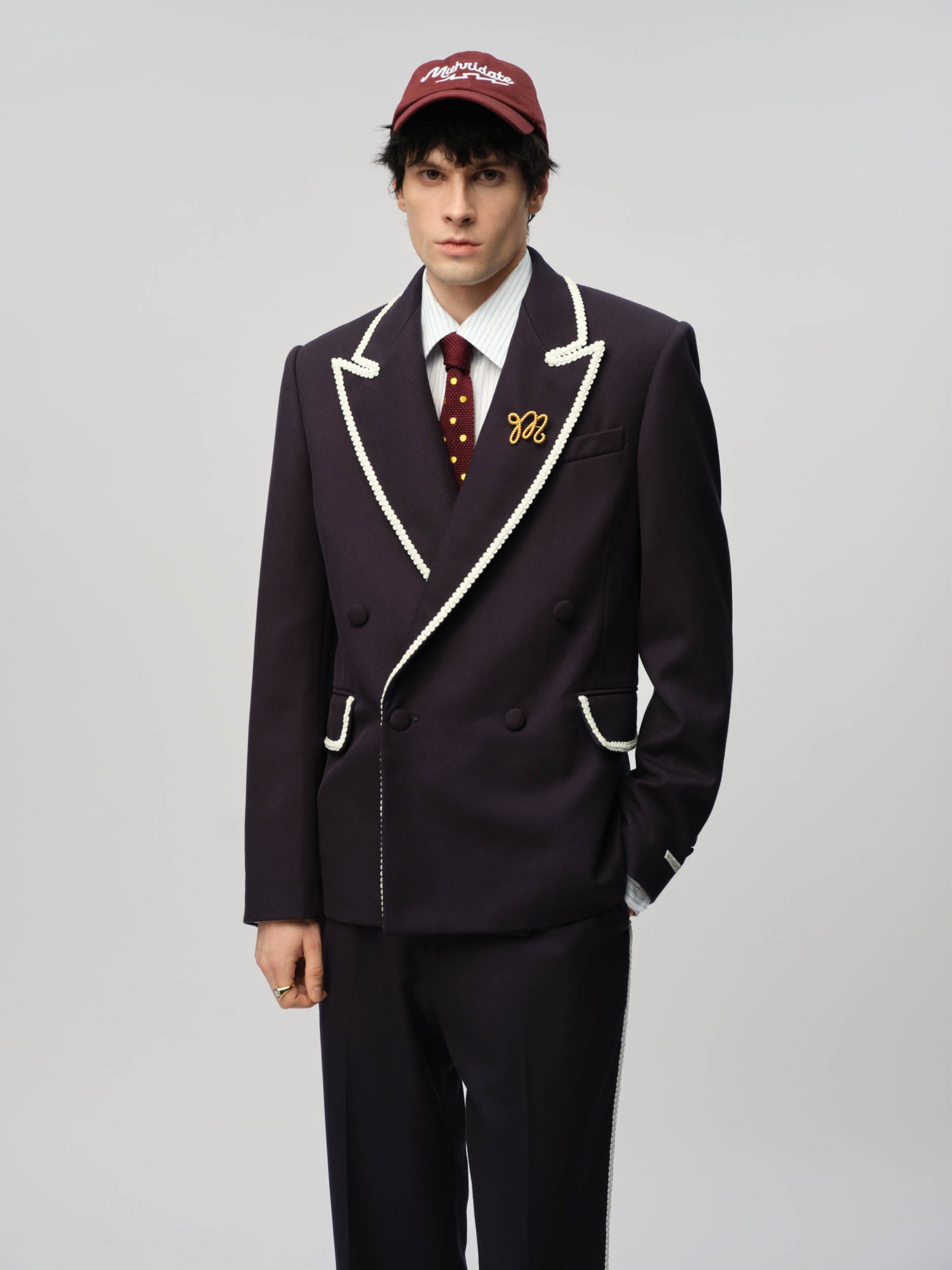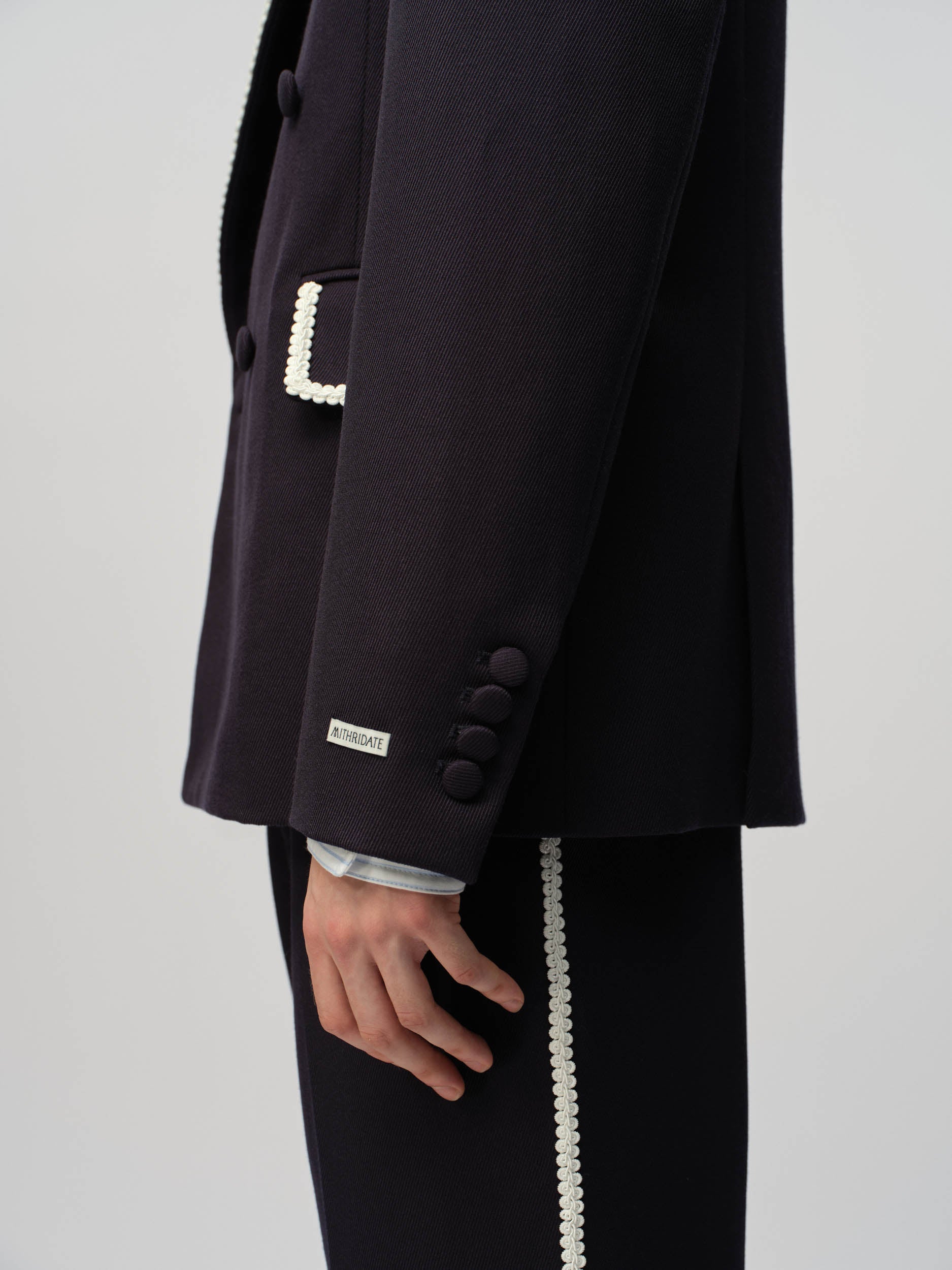 View Similar ProductsBlazer crafted from wool blend, double breasted silhouette featuring braided binding on pockets and lapel collar. Cut to a regular fit.