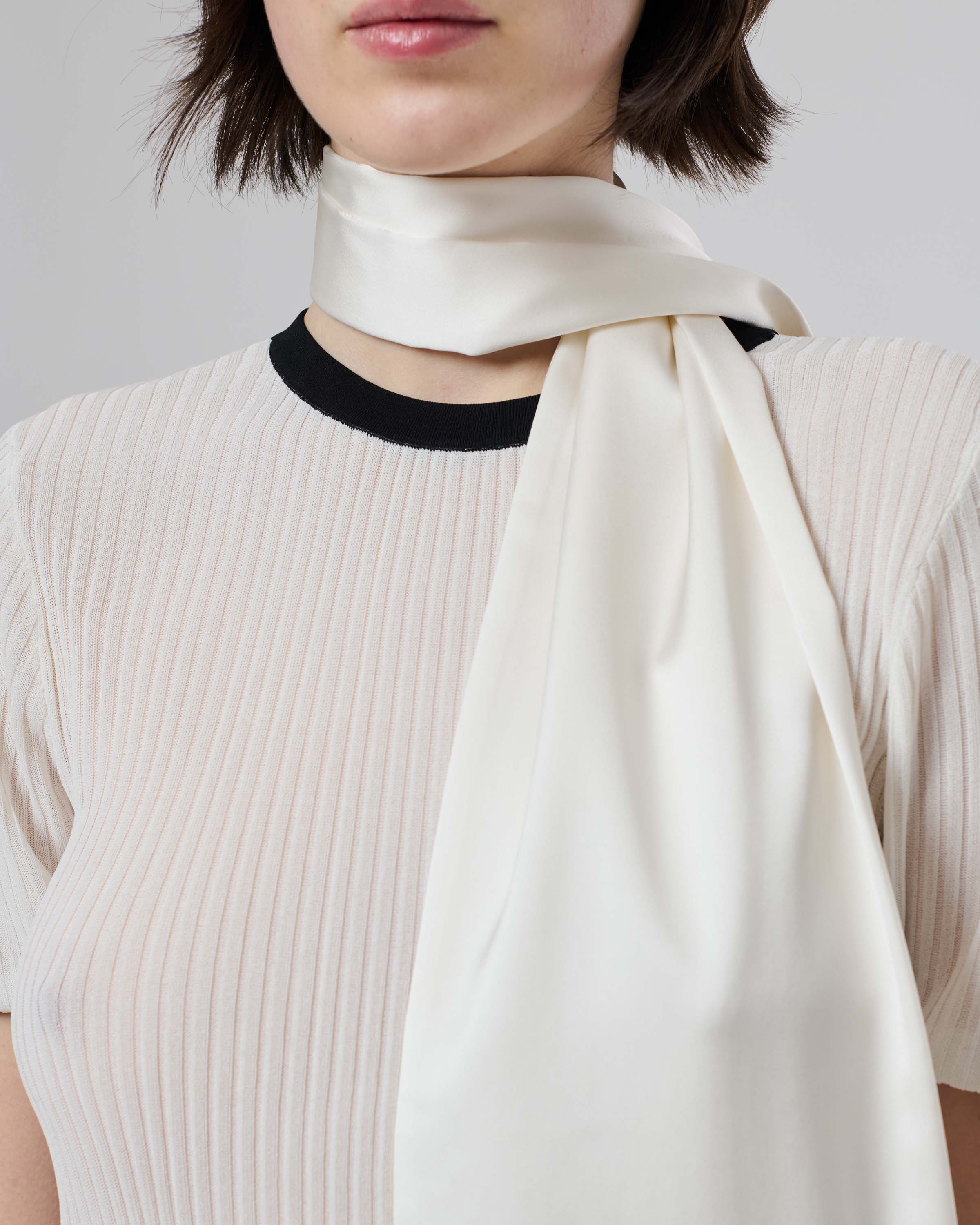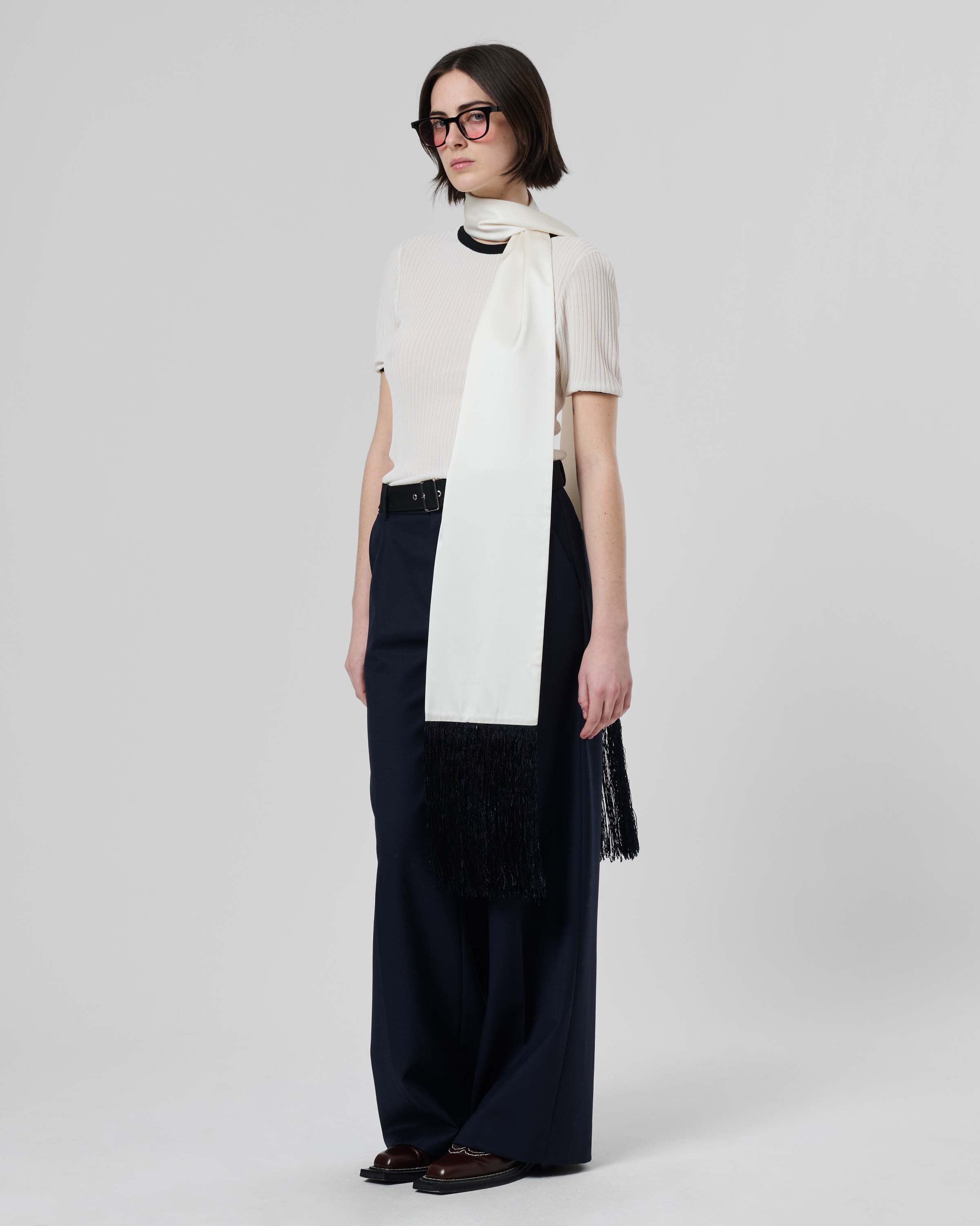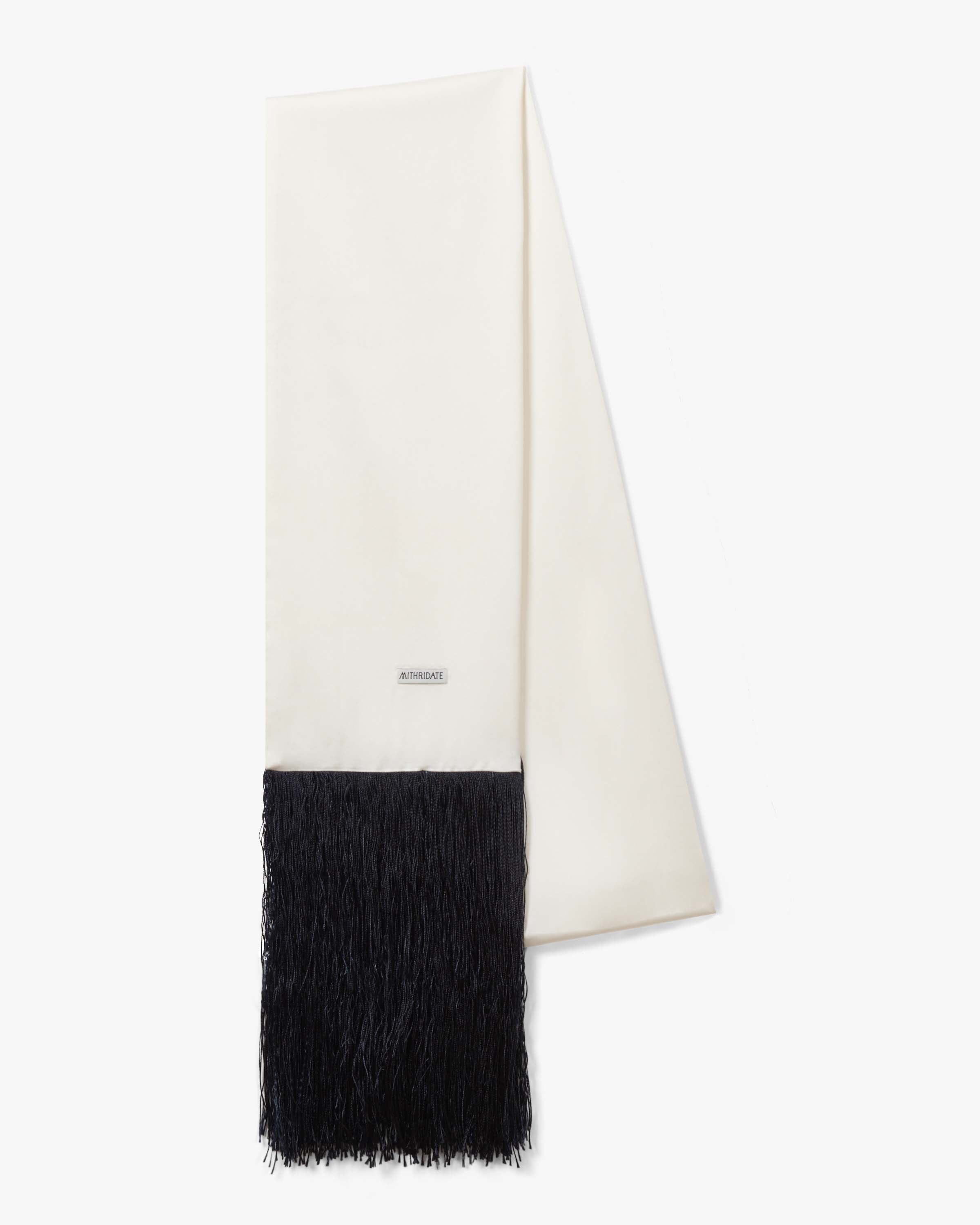View Similar ProductsSatin scarf is detailed with a Mithridate embroidered logo and contrast fringing.