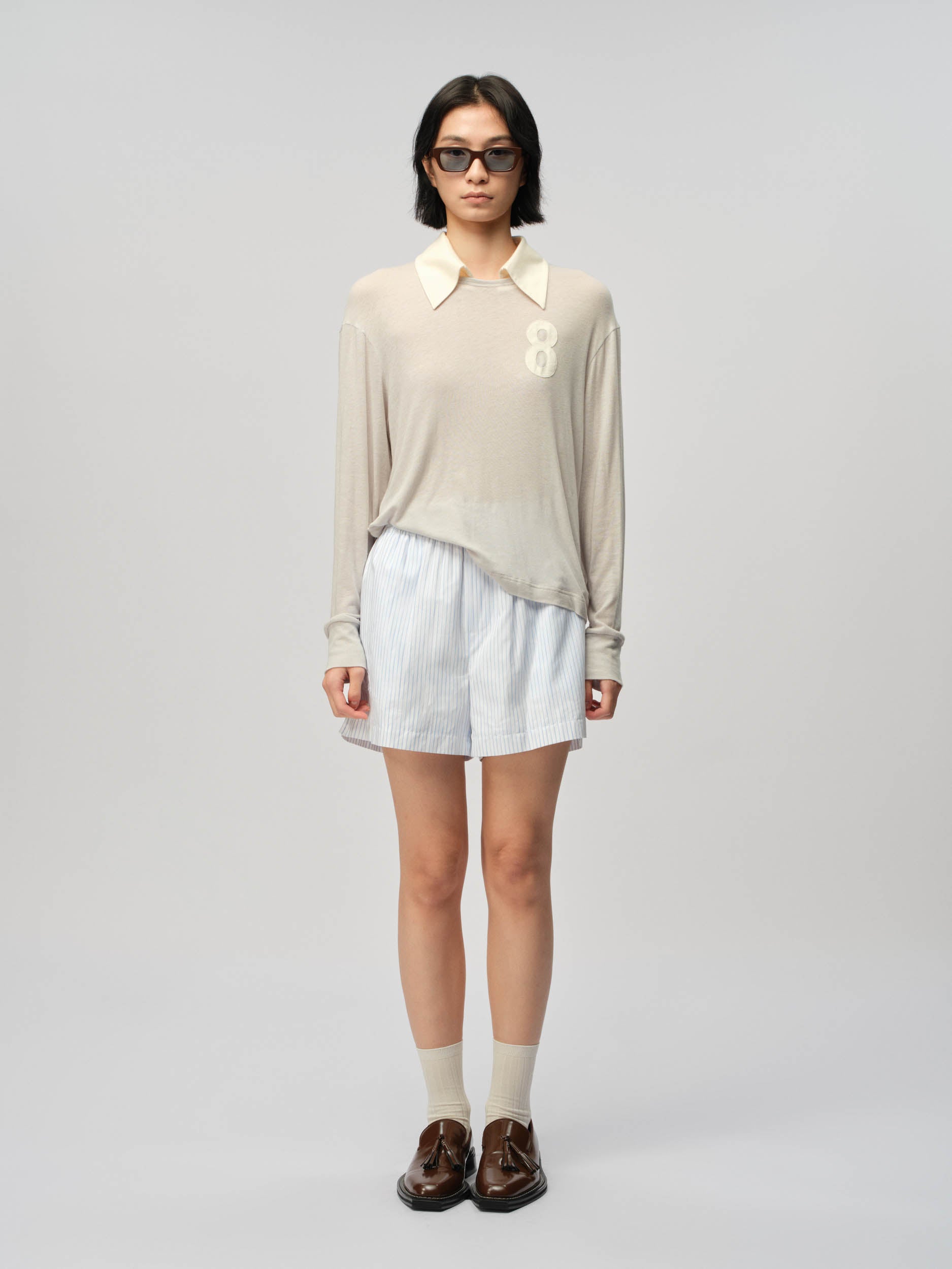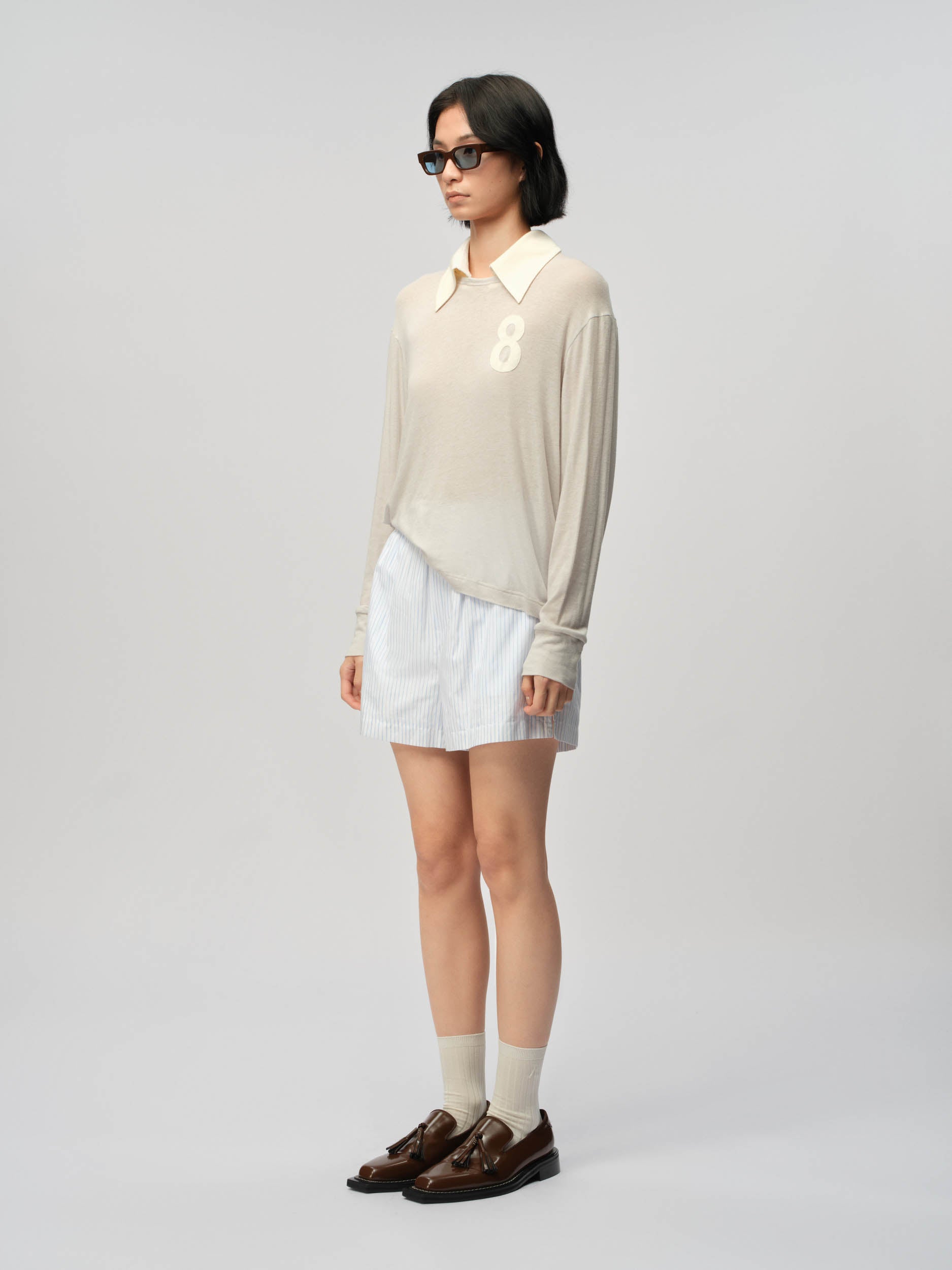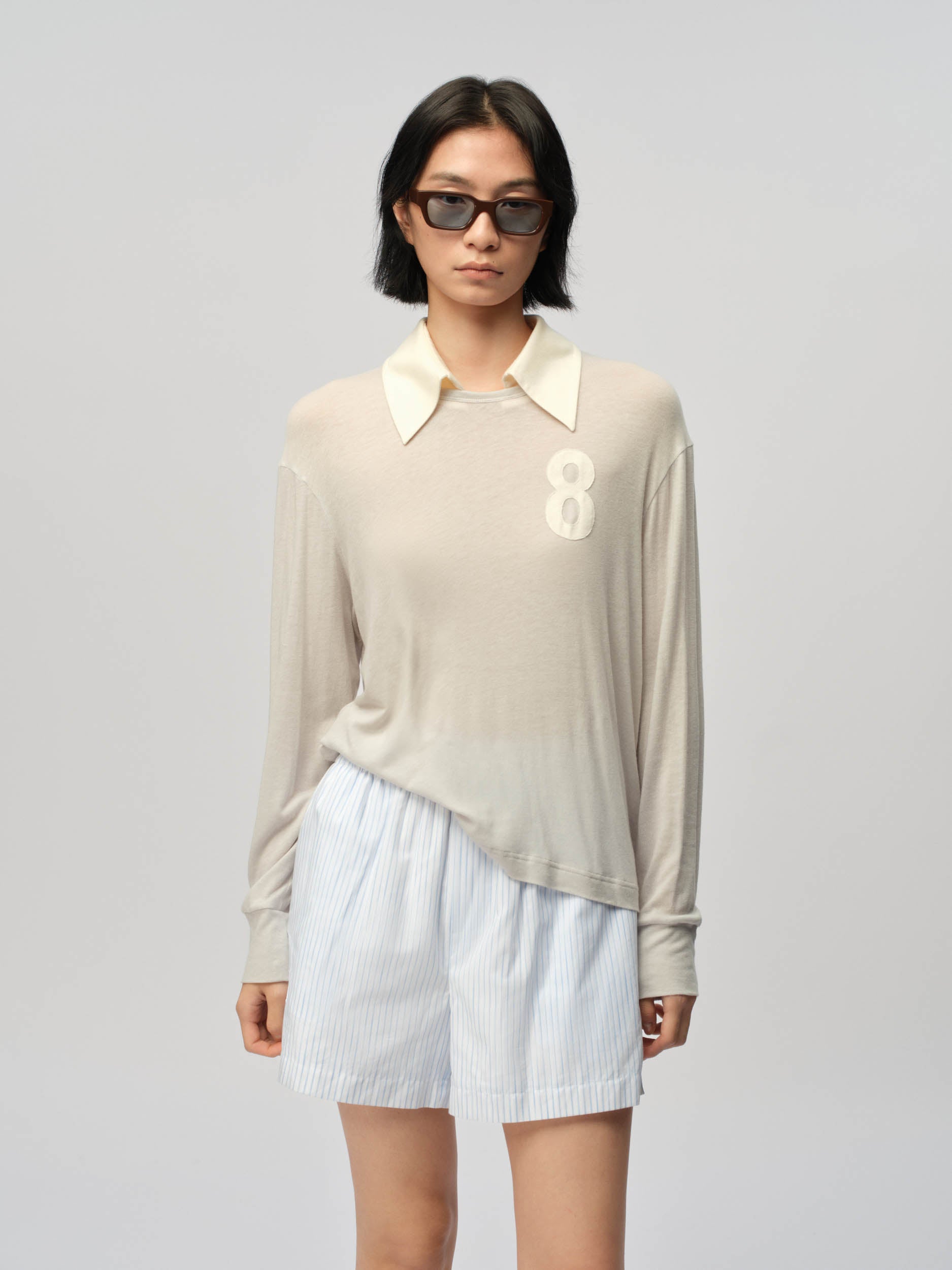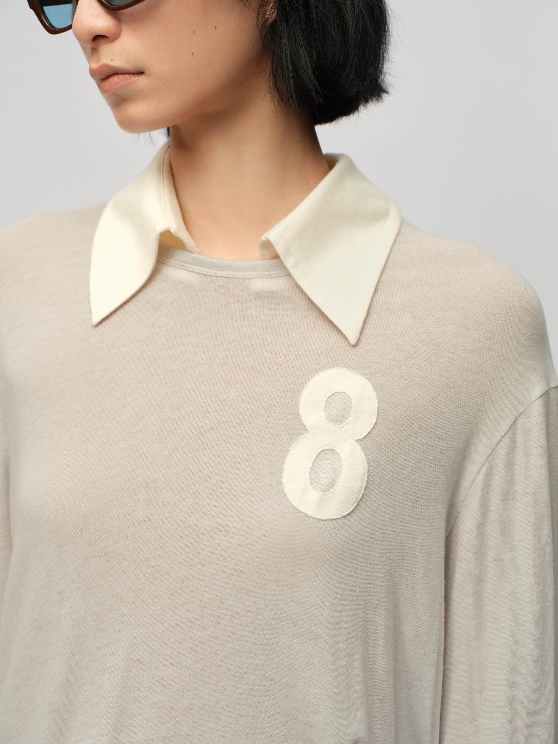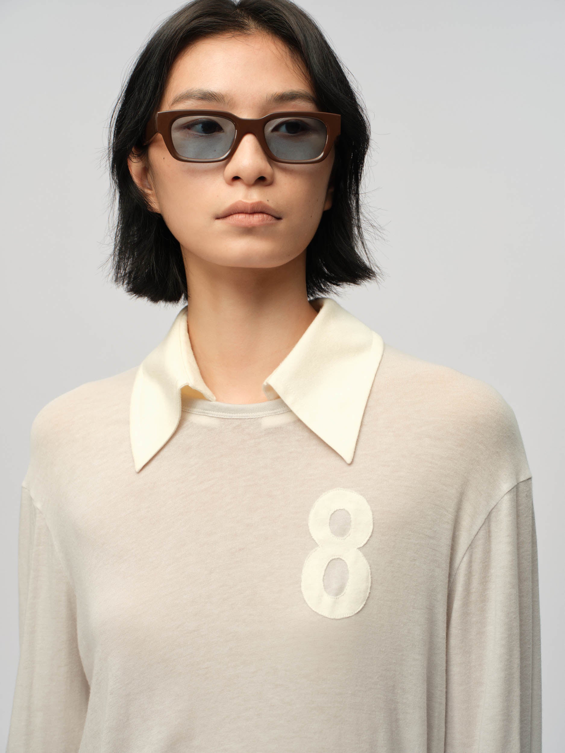 View Similar ProductsUnisex long sleeve polo crafted from cotton blend, featuring a contrast collar and appliquéd number '8'. Cut to a regular fit and finished at hip length.