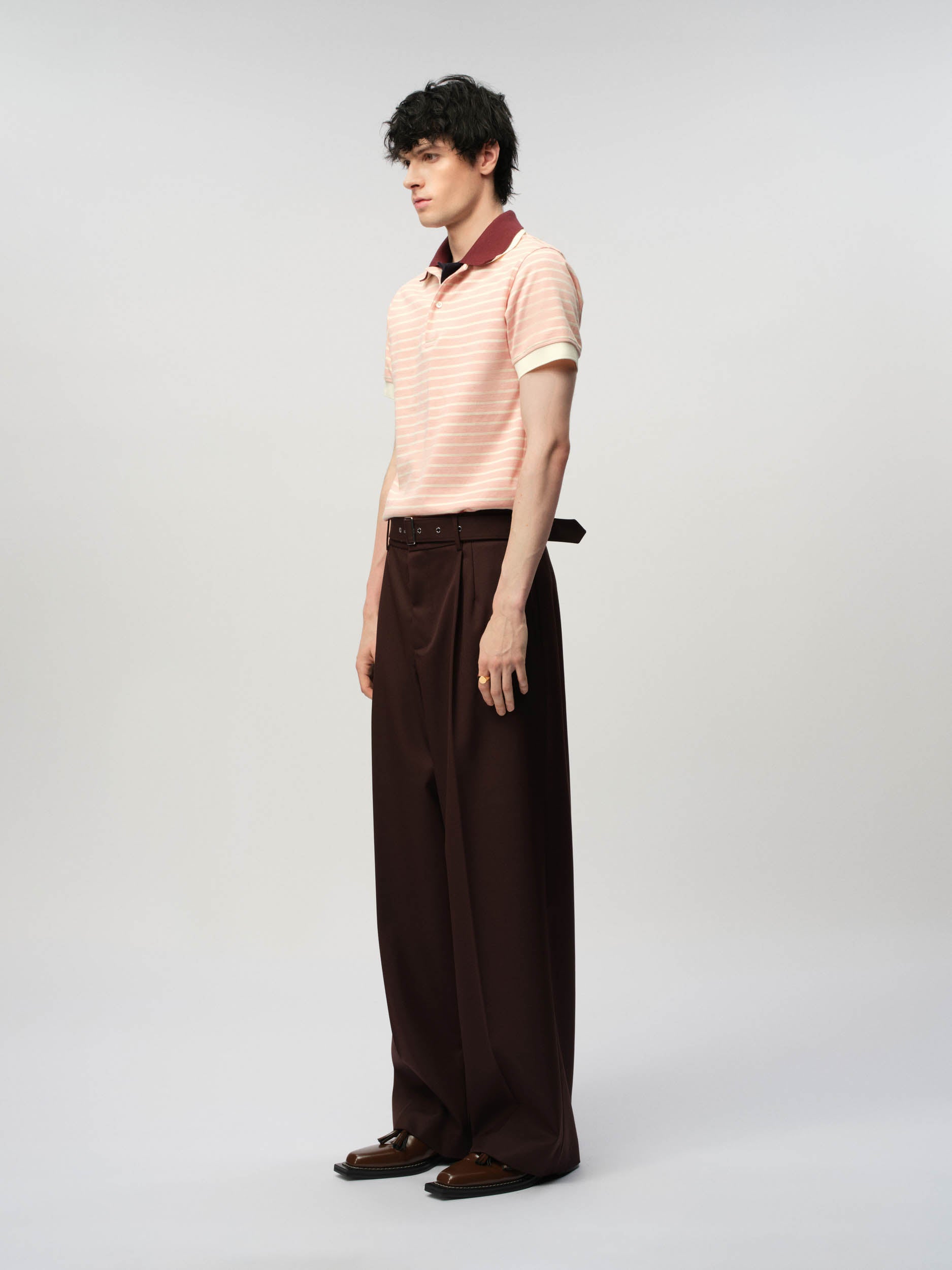 View Similar ProductsWide leg pleated trouser crafted from a wool blend featuring a matching belt. Cut to a regular fit and long length.