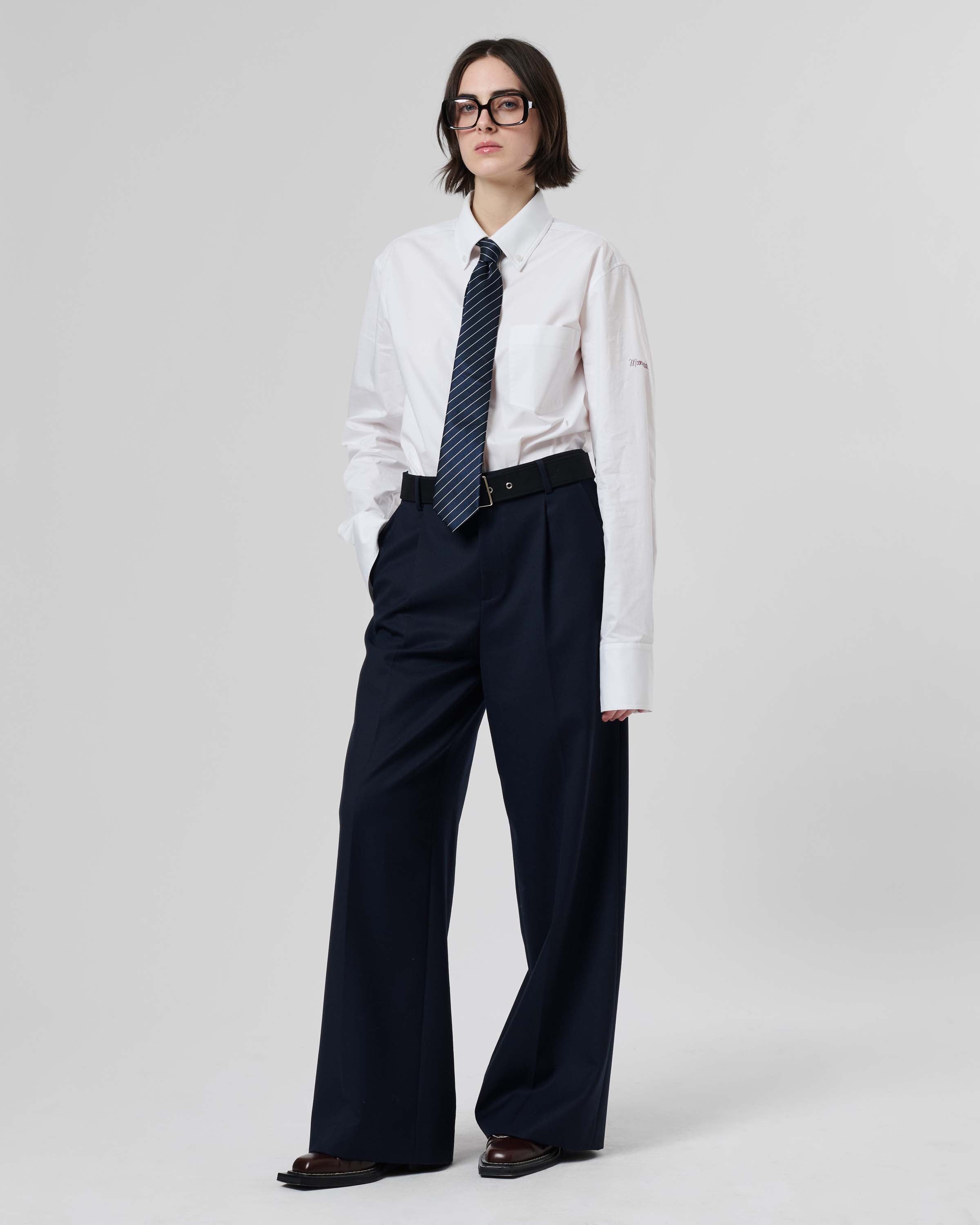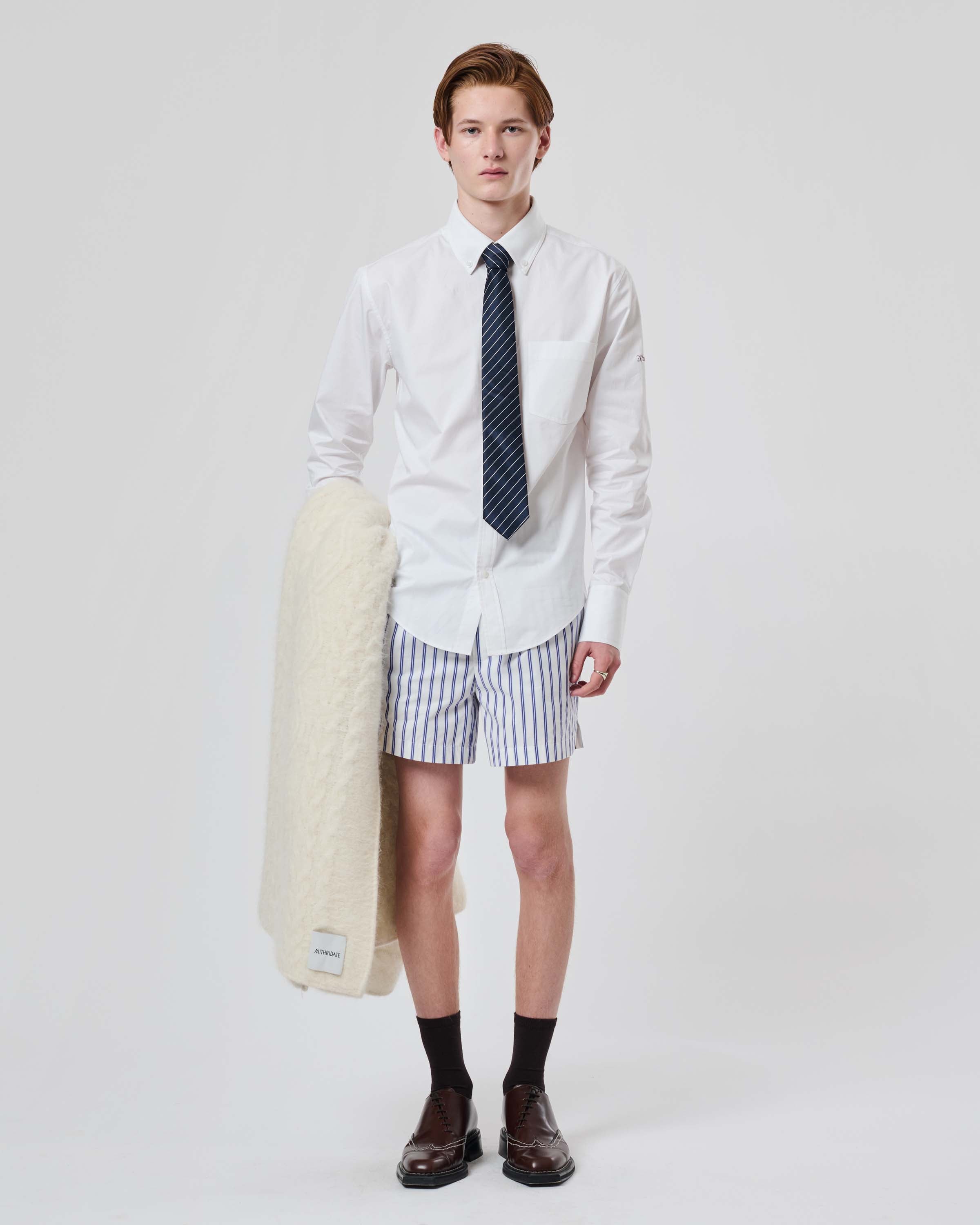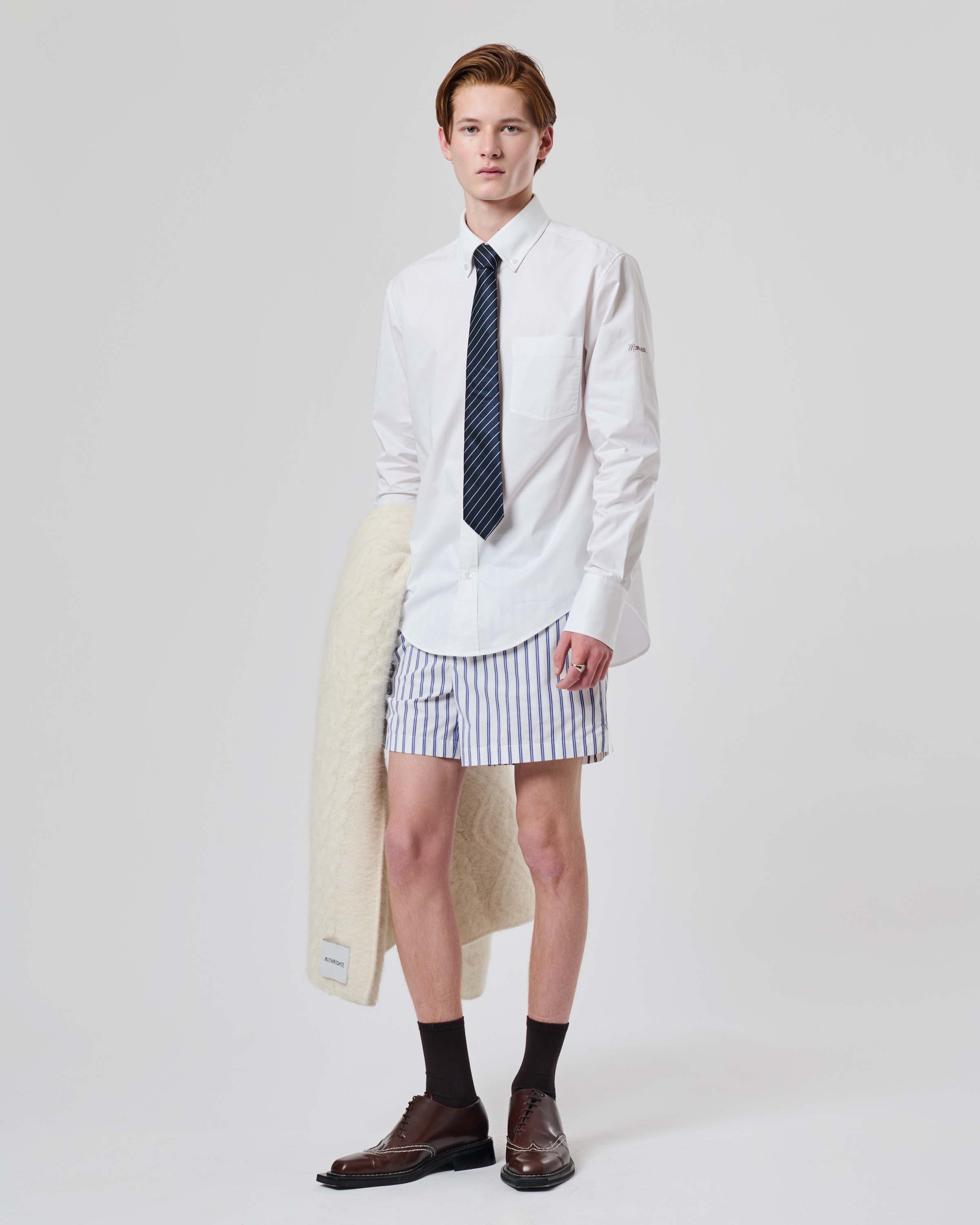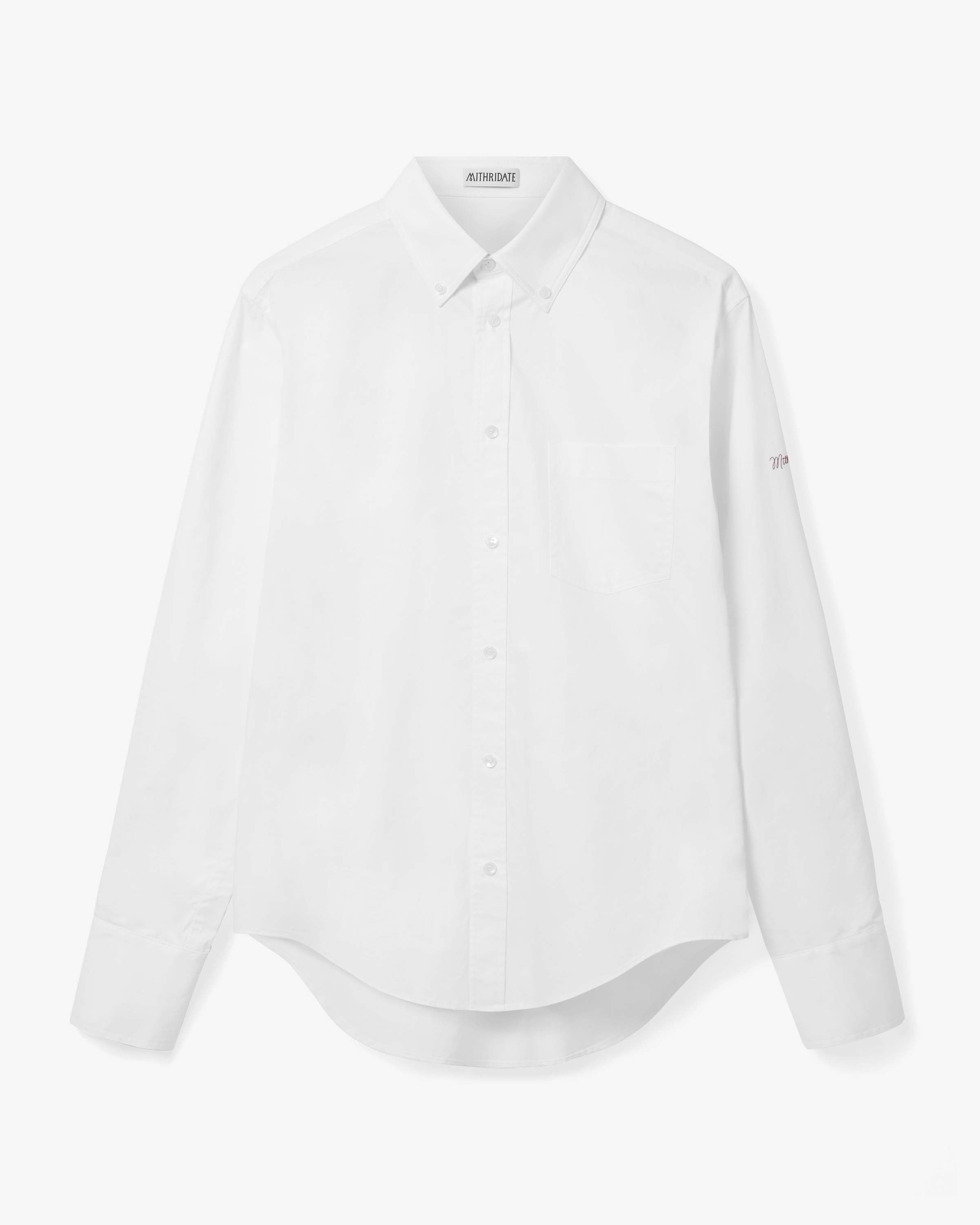 View Similar ProductsAn oxford button-down shirt crafted from cotton poplin with contrast embroidered Mithridate logo. Cut to a regular unisex fit.