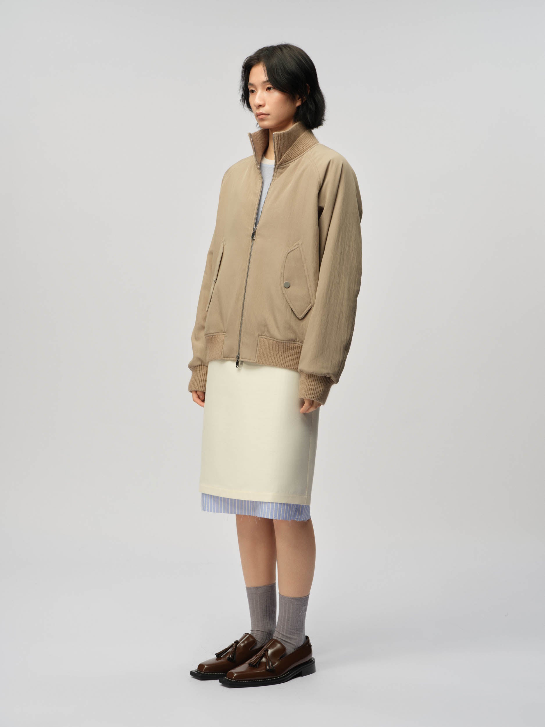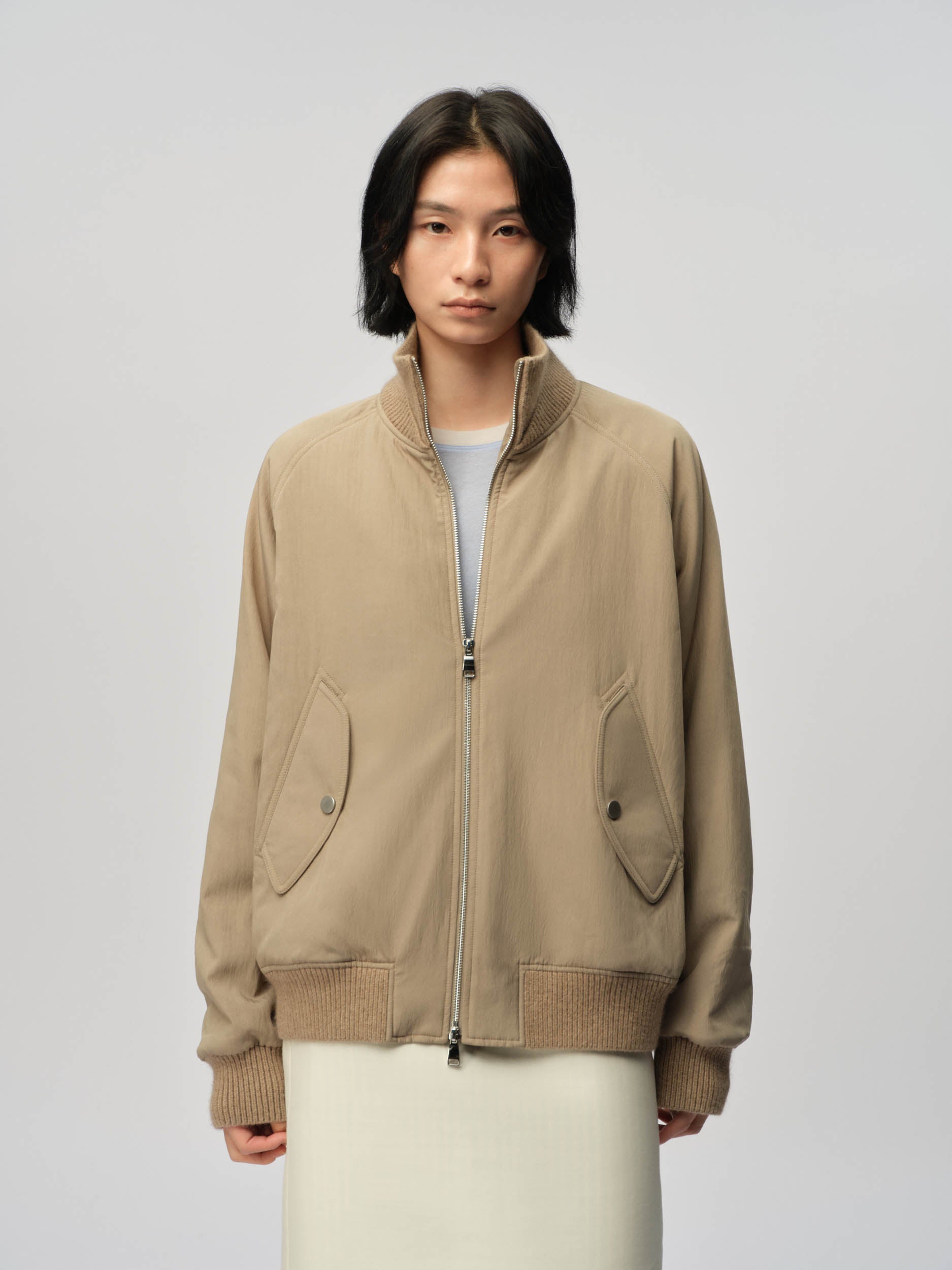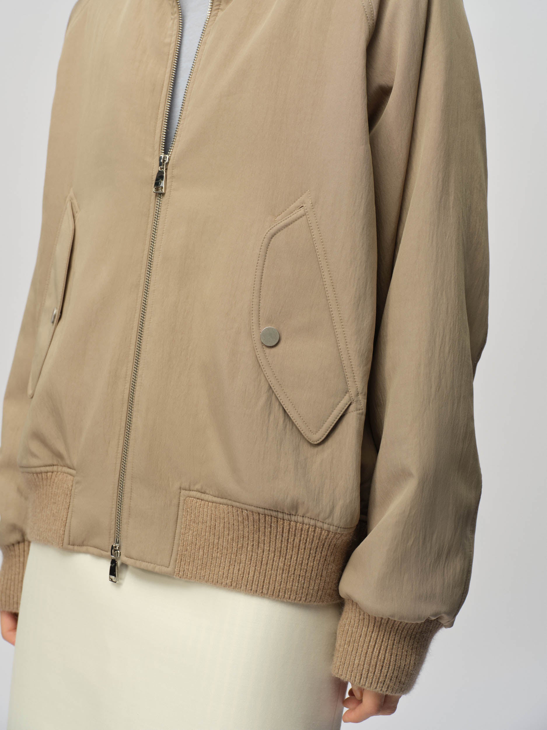 View Similar ProductsBomber jacket crafted from a technical nylon, featuring two way zip, ribbed neckline, cuffs and hem with flap waist pockets. Cut to a relaxed unisex fit and hip length.