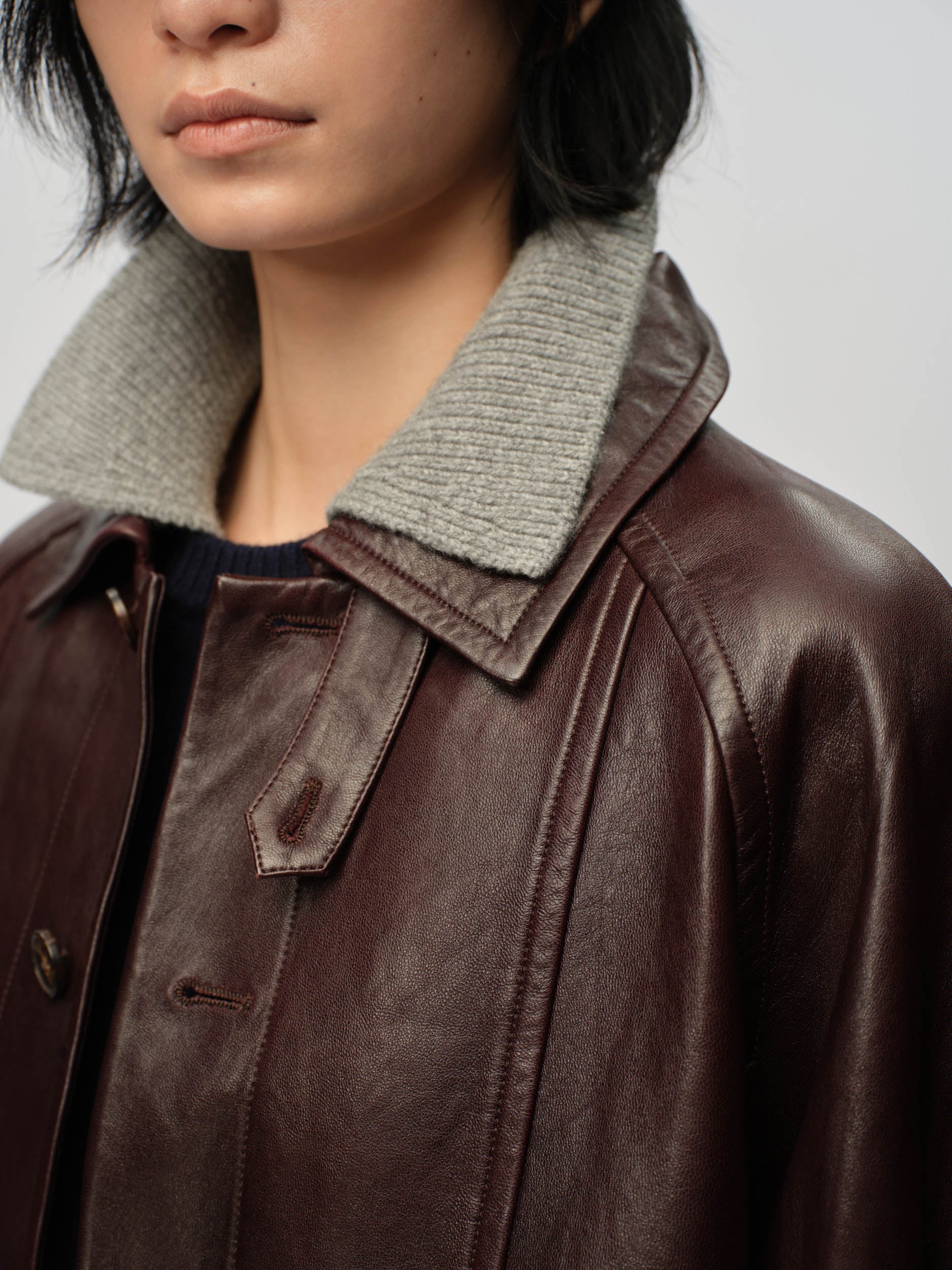 View Similar ProductsCoat crafted from Bovine Leather, featuring raglan sleeves, two front welt pockets and button-up closure. Cut to a regular fit.