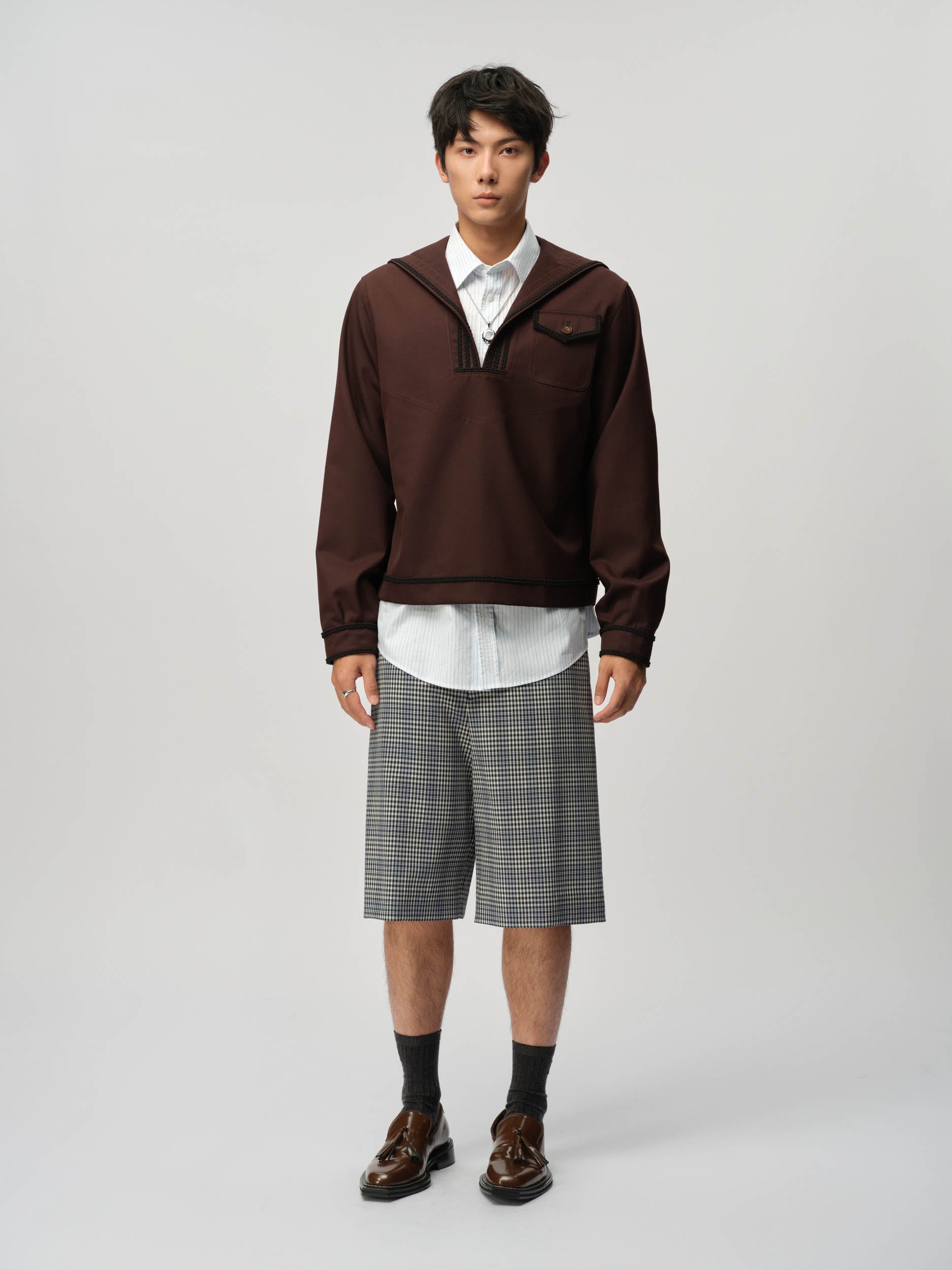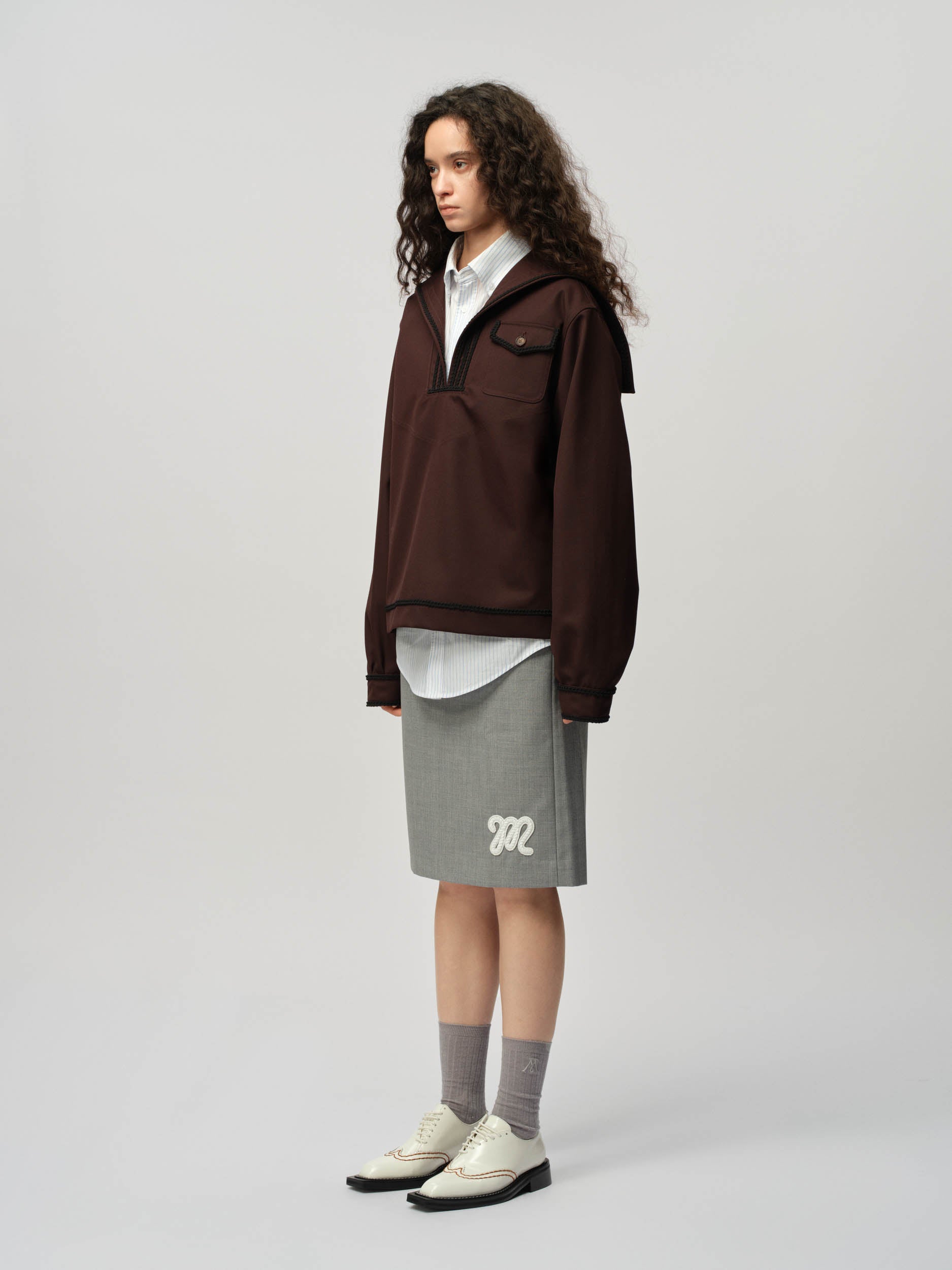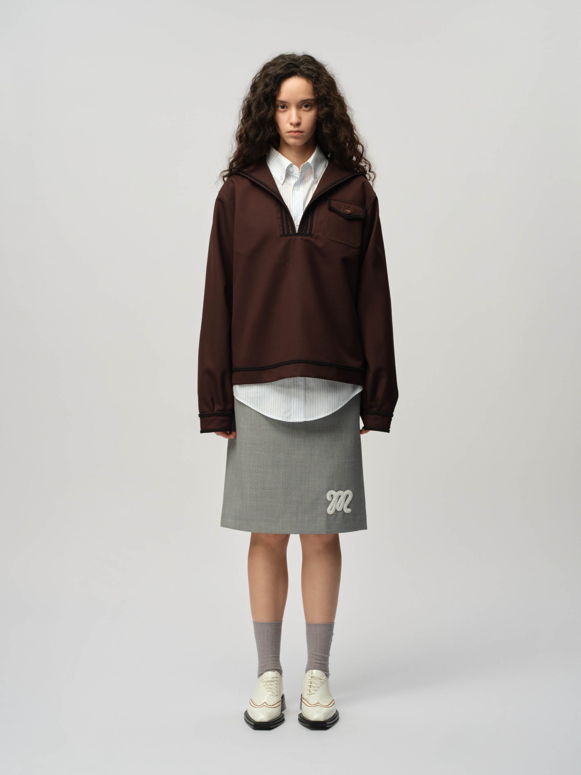 View Similar ProductsUnisex long sleeve sailor top made from wool blend, featuring a braiding trim and classic flap front pocket. Cut to a regular fit and finished at hip length.