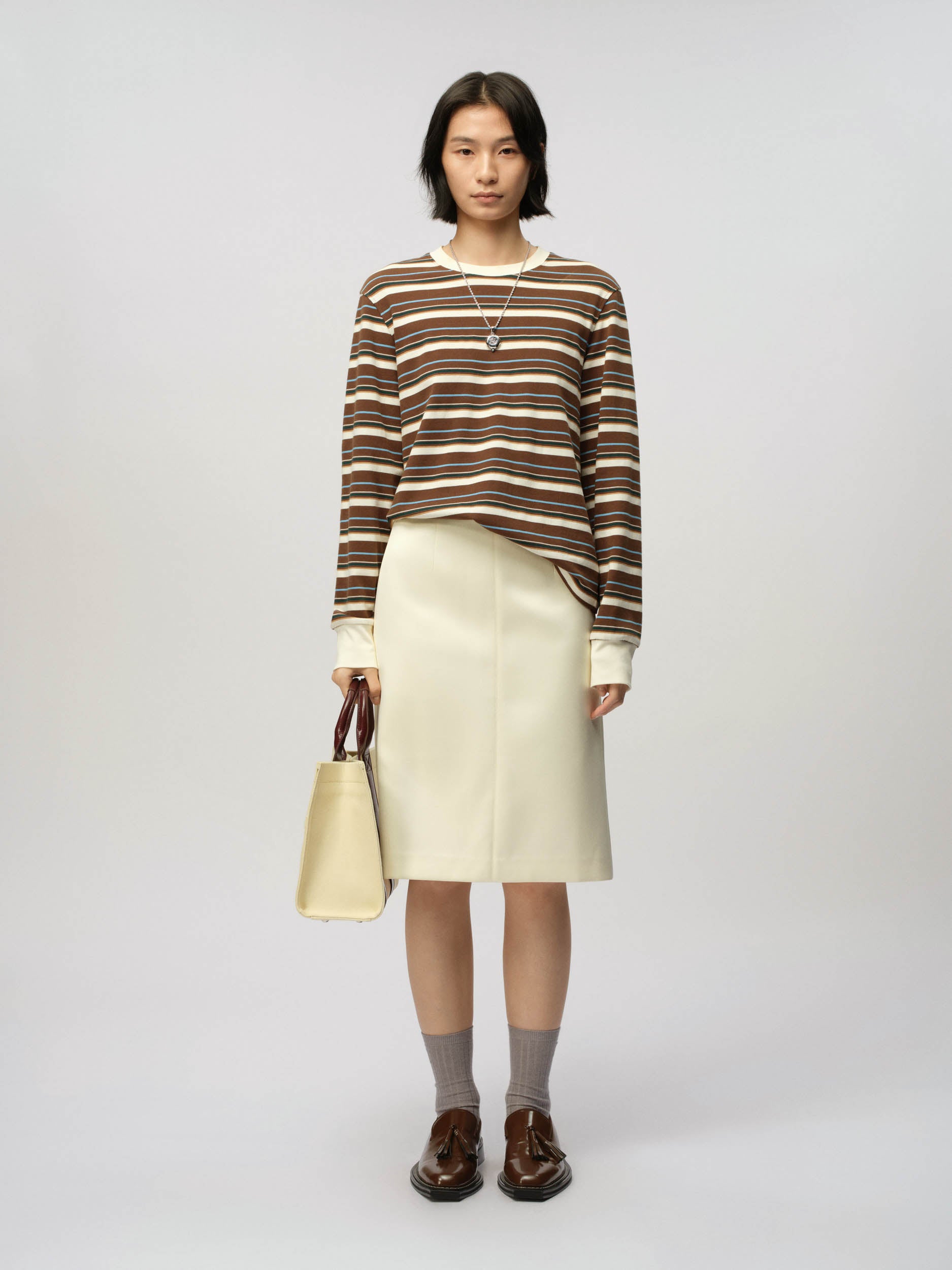 View Similar ProductsStriped Jersey t-shirt in a classic silhouette with ribbed neckline. Finished with contrast embroidered Mithridate lettering.