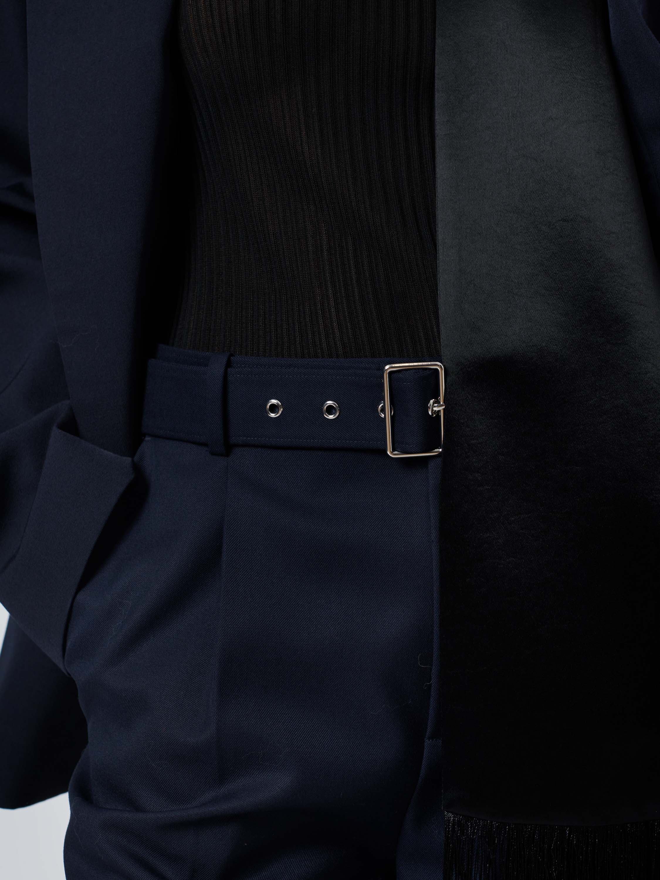 View Similar ProductsWide leg pleated trouser crafted from a wool blend featuring a matching belt. Cut to a regular fit and long length.